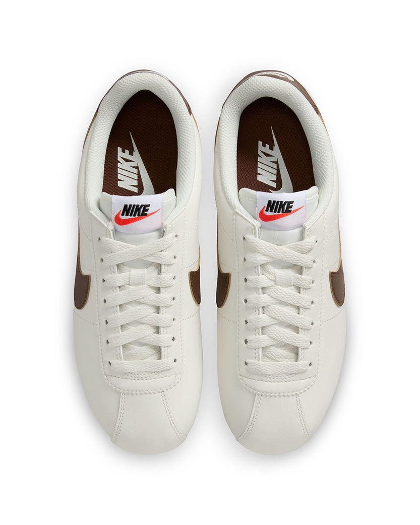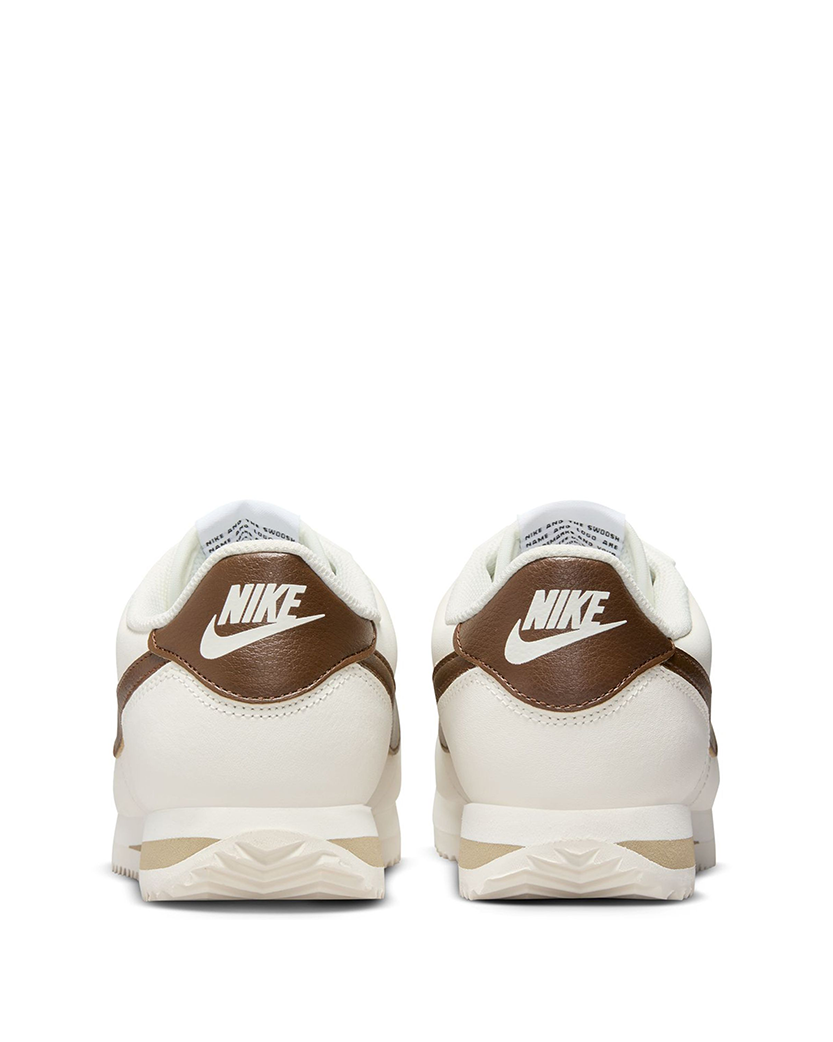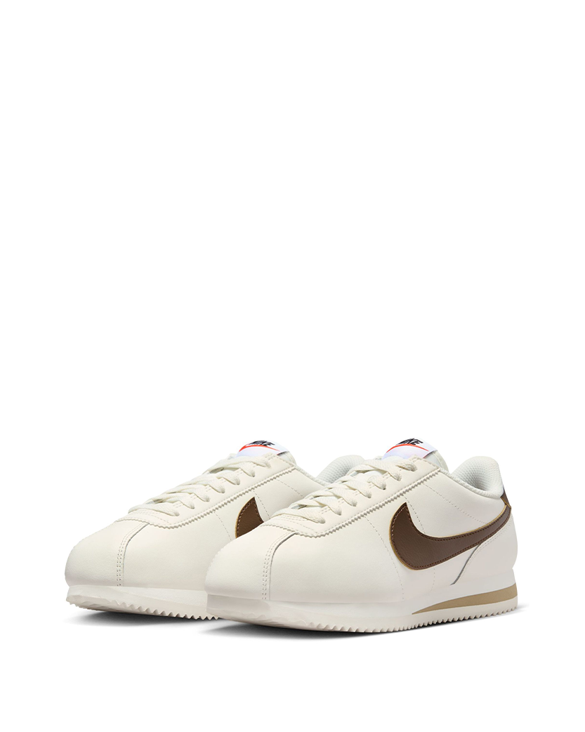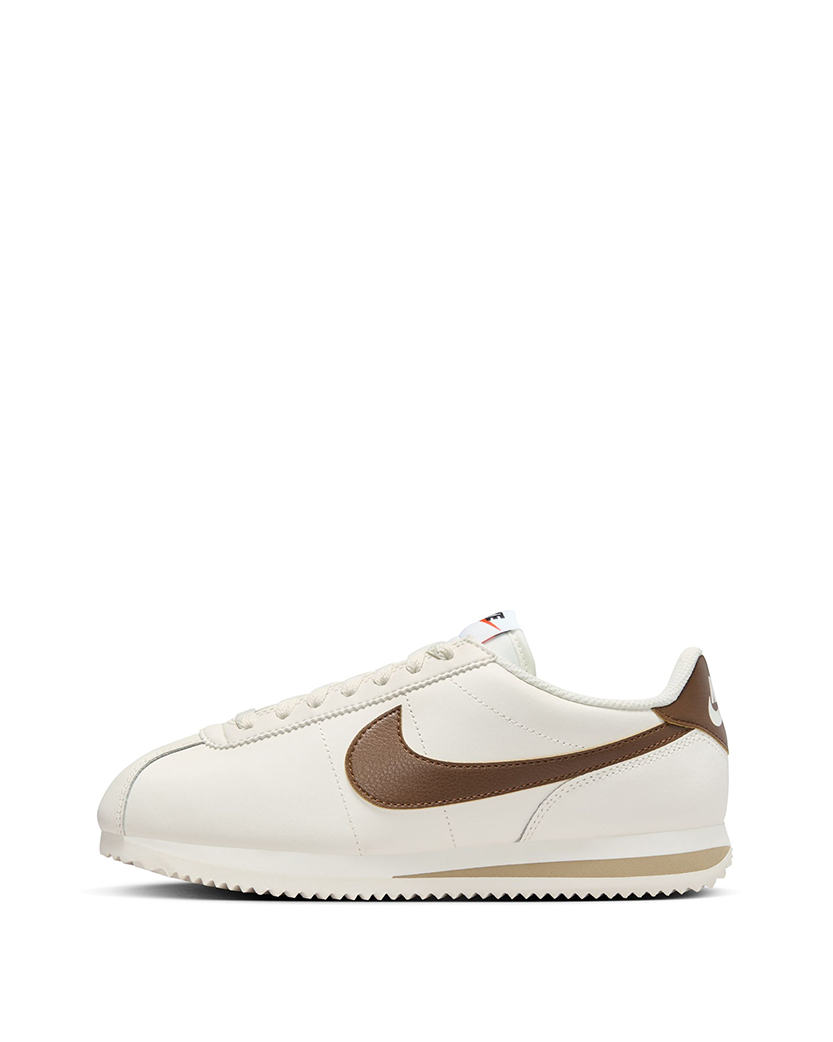 Nike Wmns Cortez 'Cacao Wow' – це стильна ітерація культової моделі, виконана у вишуканій палітрі. Кросівки виготовлені з високоякісної шкіри з сітчастими язичками та підкладкою, що забезпечує міцність і повітропроникність. Елегантне поєднання кольорів проявляється на логотипах Swoosh, п'яткових накладках та устілках, а відтінок хакі на білій проміжній підошві підкреслює сучасний вигляд. Класичний логотип Nike прикрашає язички, устілки та п’ятки, а гумова підошва з ялинковим візерунком забезпечує хороше зчеплення з поверхнею, додаючи моделі комфорту та довговічності.