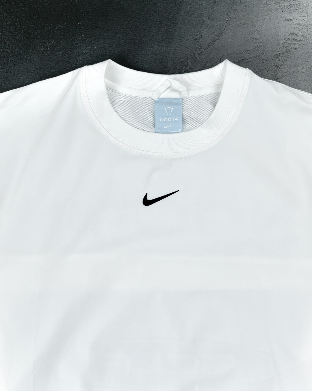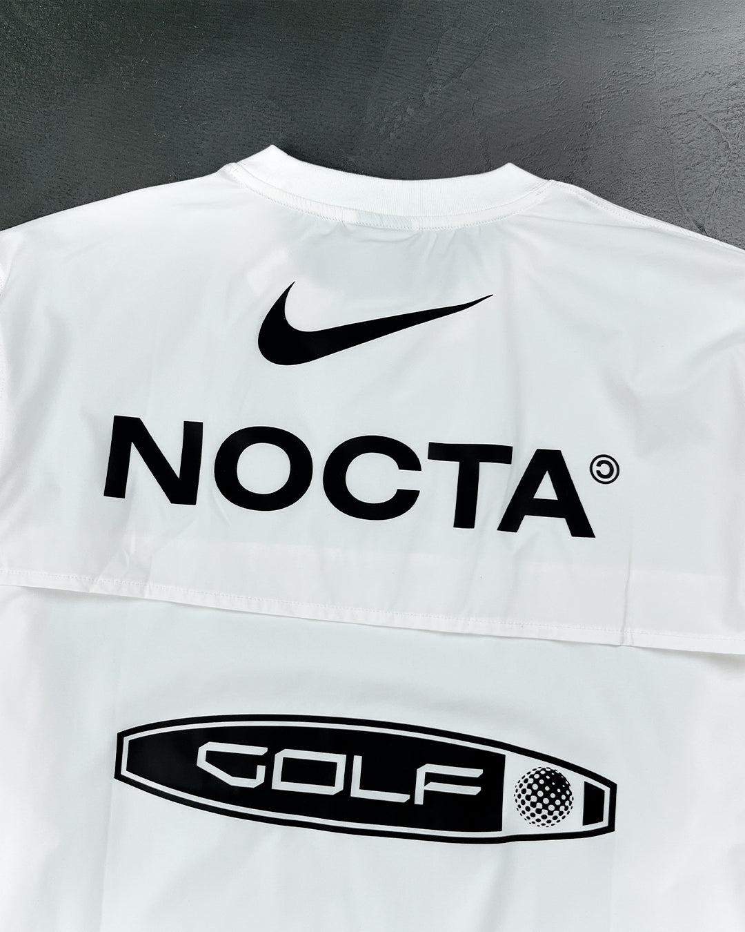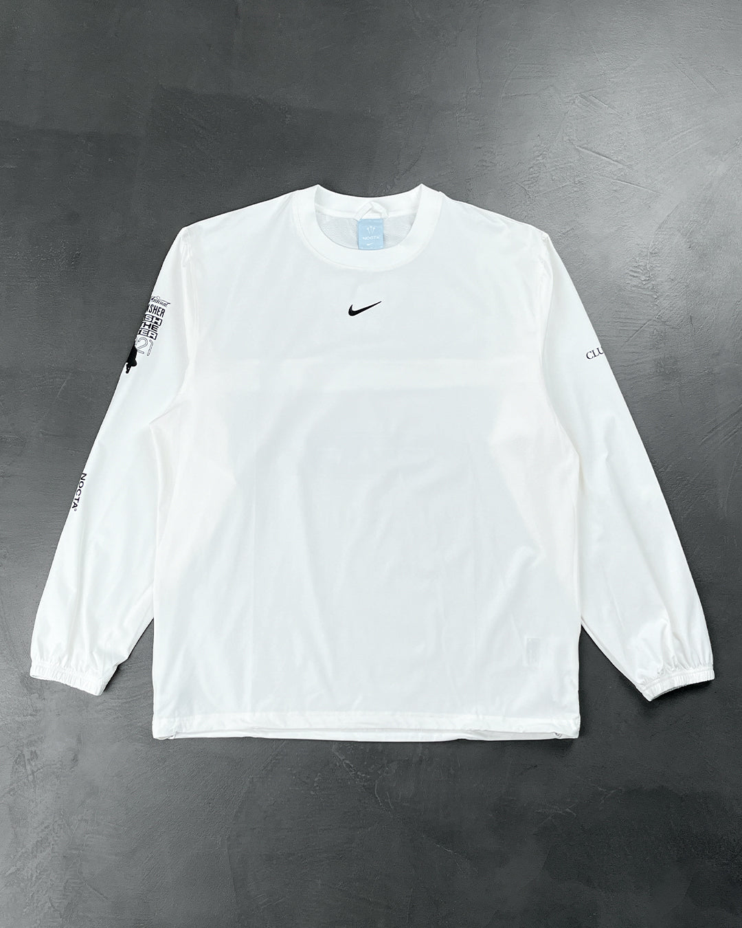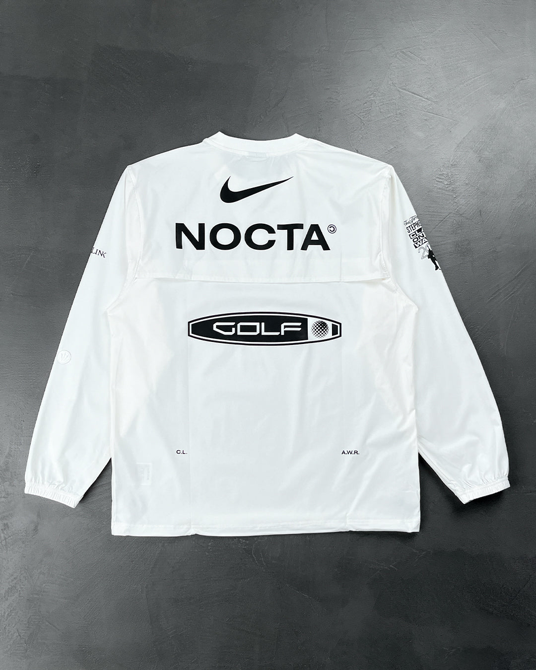 Лонгслів Golf Crewneck Top від Nike x Drake NOCTA виготовлений з нейлону, що надає виробу легкості та забезпечує комфорт при носінні. На спині присутня сітчаста вставка для поліпшення повітропроникності. Еластичні вставки на рукавах і затяжка подолу дають змогу регулювати посадку максимально комфортним чином. Принт на рукаві відсилає до найбільшого власника ключок для гольфу в Канаді. Підходить як для занять спортом, так і для повсякденного носіння.