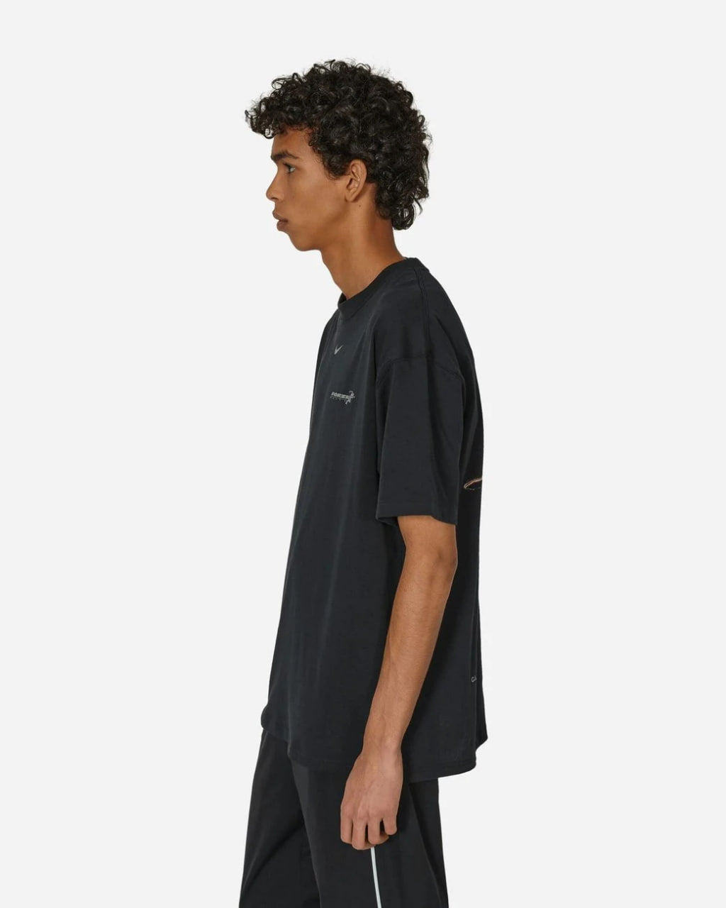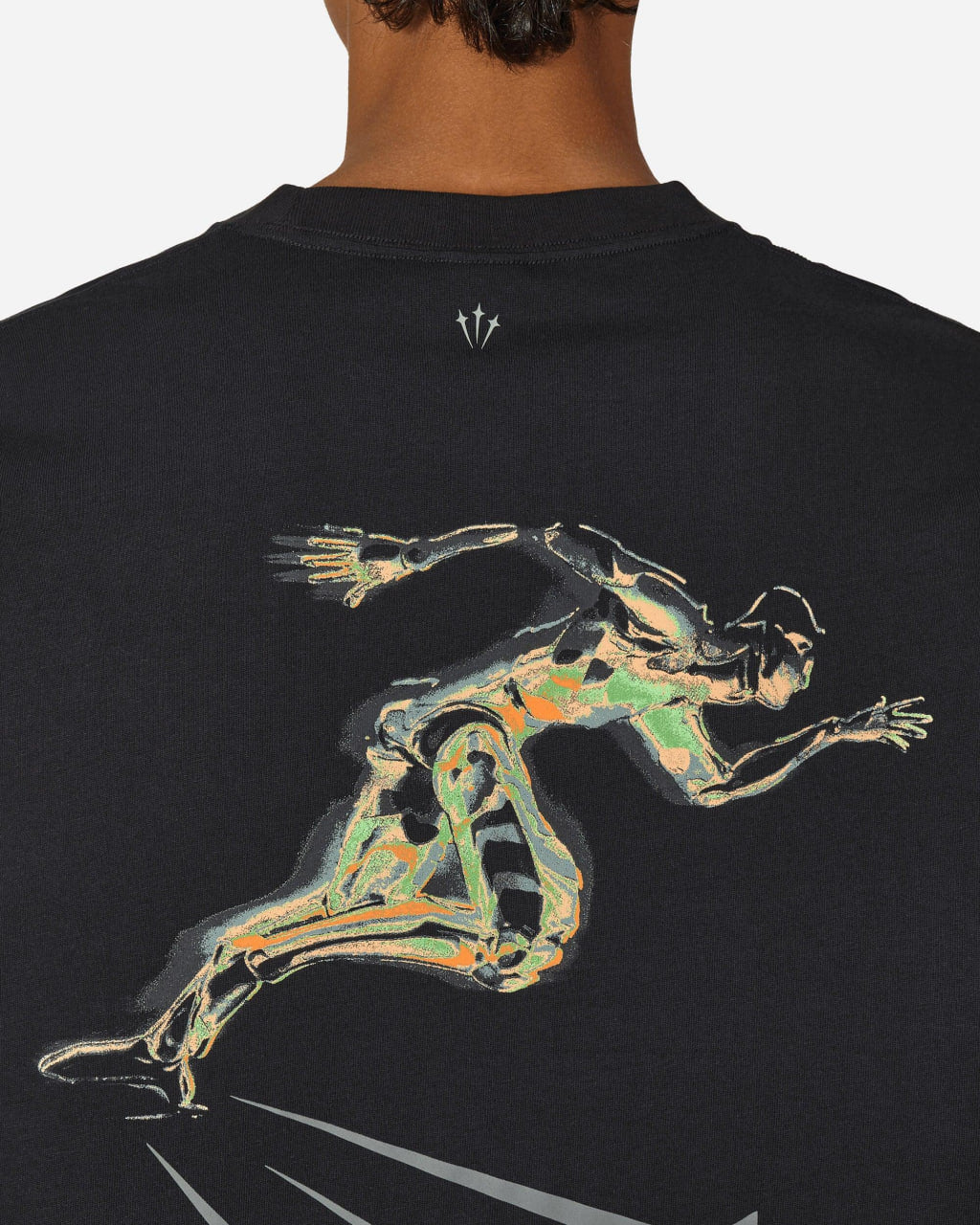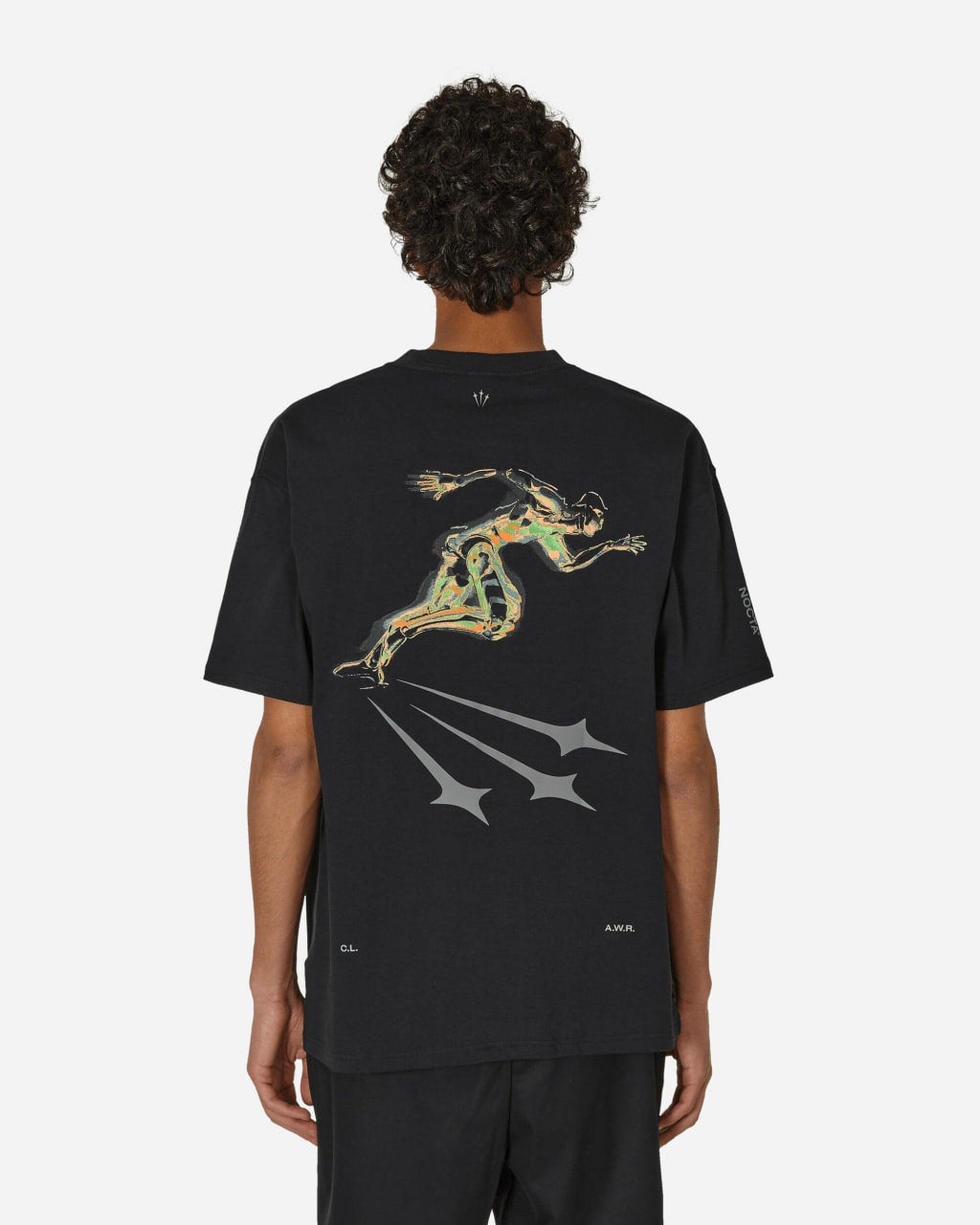 Ця футболка з короткими рукавами має графічний принт із зображенням чоловіка, що біжить, на спині. Логотипи колаборації доповнюють дизайн.