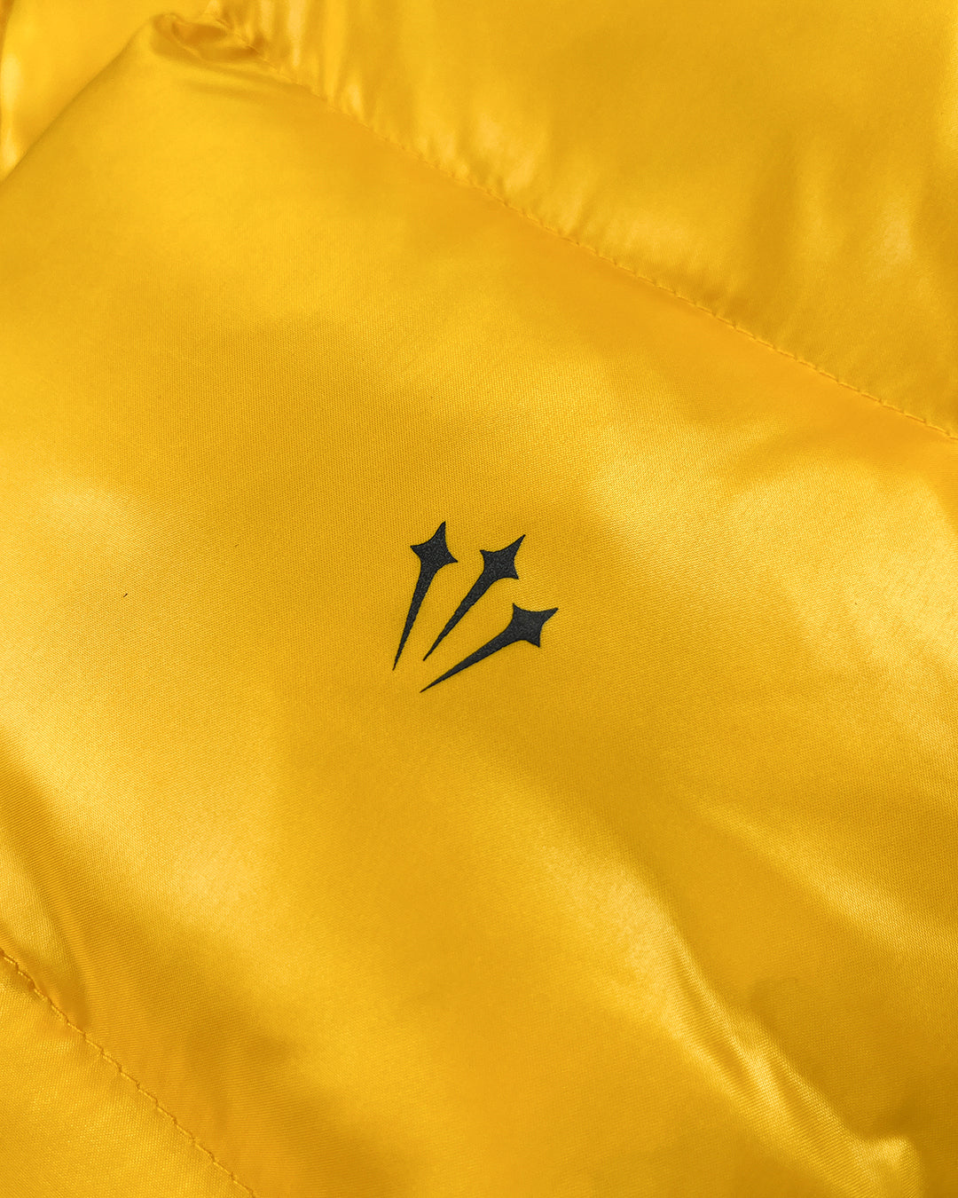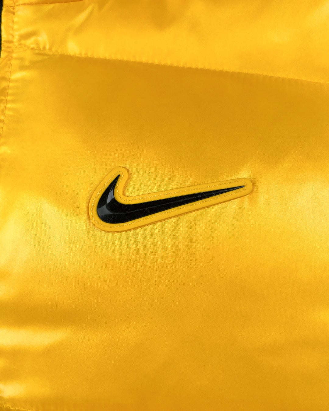 Nike та Drake спільно створили колекцію NOCTA, натхненну вуличним одягом міст по всьому світу. Ця золотисто-жовта куртка-пуховик є яскравим прикладом, незважаючи на те, що вона відрізняється від улюбленого в культурі, чорного кольору. Вона готова до холодних зимових днів завдяки блискучій поліестеровій оболонці та утеплювачу з гусячого пуху. А безліч варіантів зберігання дрібних предметів дозволяє тримати ваші найнеобхідніші речі під рукою.
