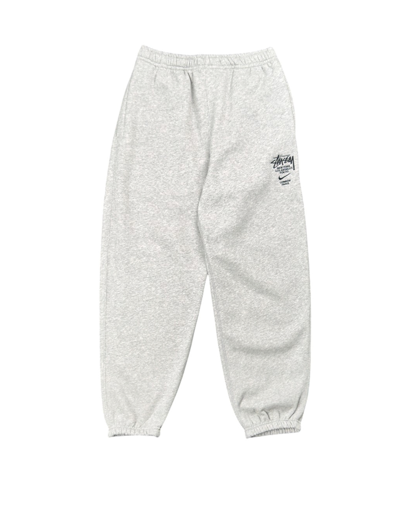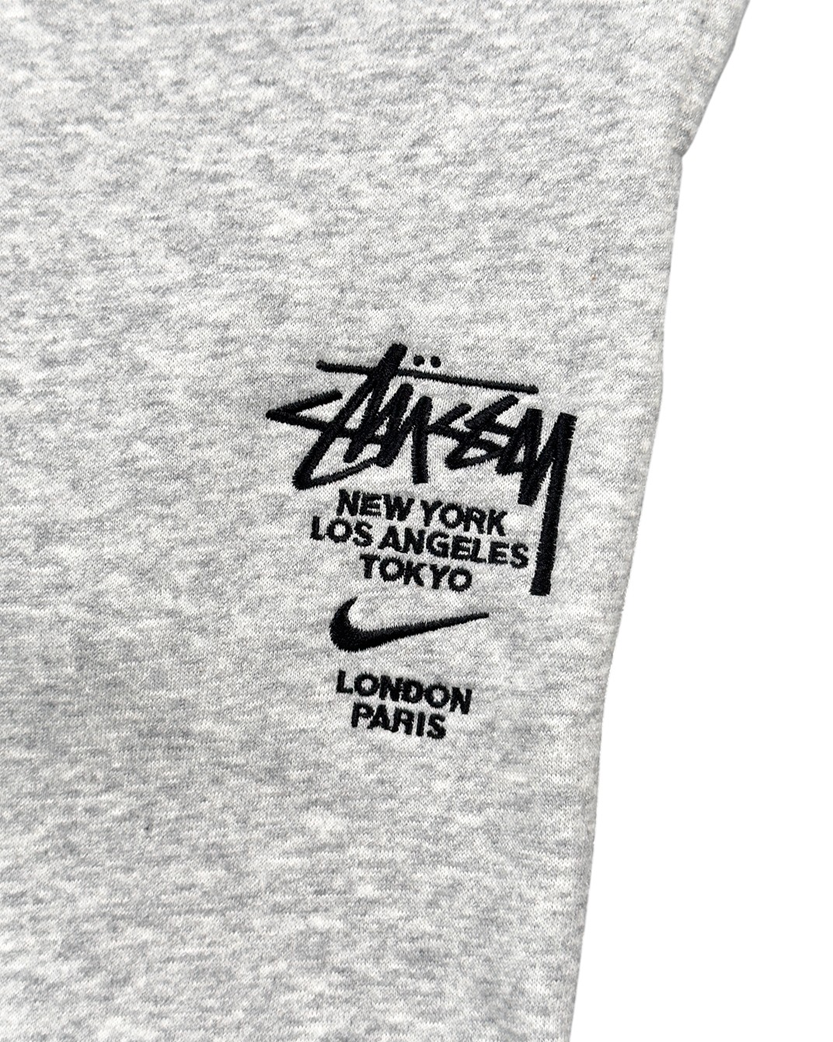 З моменту свого першого співробітництва у 2000 році Nike та Stüssy розробляли дизайн на перетині вуличного одягу та спортивного дозвілля. Те саме і цього сезону, що доводять ці сірі спортивні штани. Вони виготовлені із суміші бавовни з флісовою підкладкою для комфорту в місті, а спільний брендинг — зокрема, графіка Swoosh та світового турне Stüssy — вишита на стегні чорною ниткою.