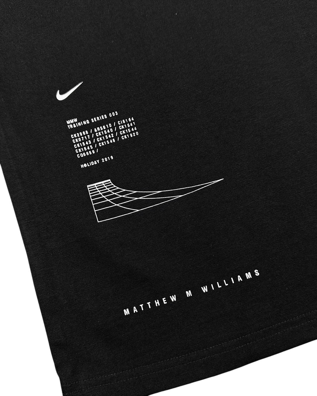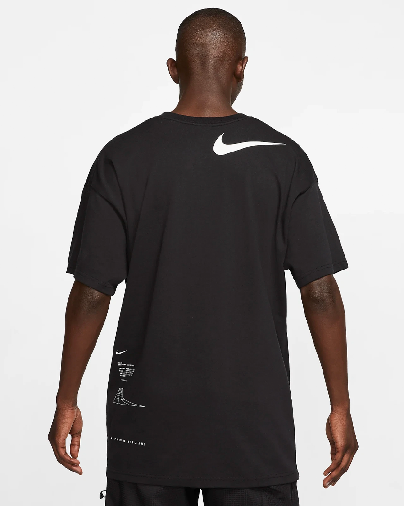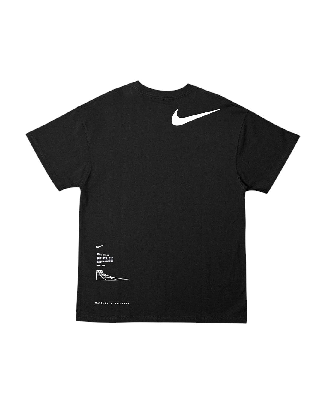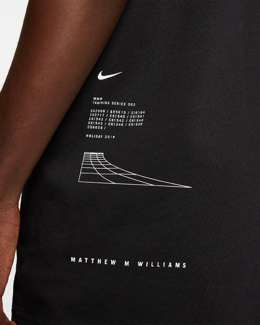 Креативний директор Метью М. Вільямс об'єднав зусилля з Nike, щоб створити футболку з коротким рукавом з м'якого трикотажу, що має вільний крій. На футболці спереду та ззаду зображений простий графічний принт та логотипи.