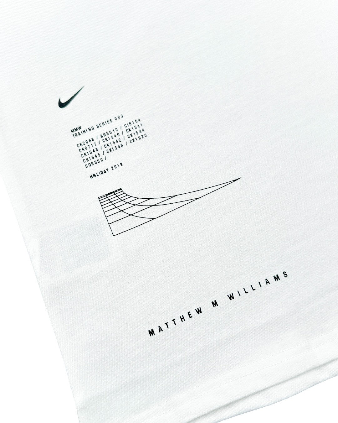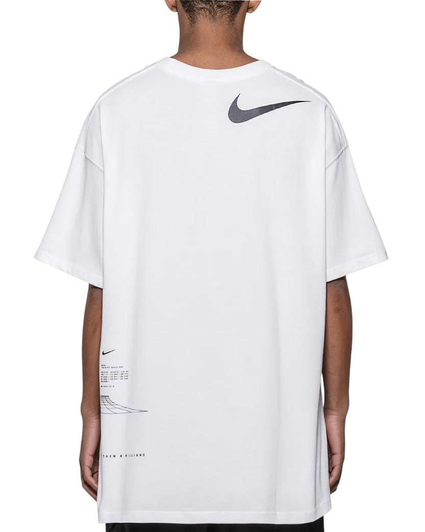 Креативний директор Метью М. Вільямс об'єднав зусилля з Nike, щоб створити футболку з коротким рукавом з м'якого трикотажу, що має вільний крій. На футболці спереду та ззаду зображений простий графічний принт та логотипи.