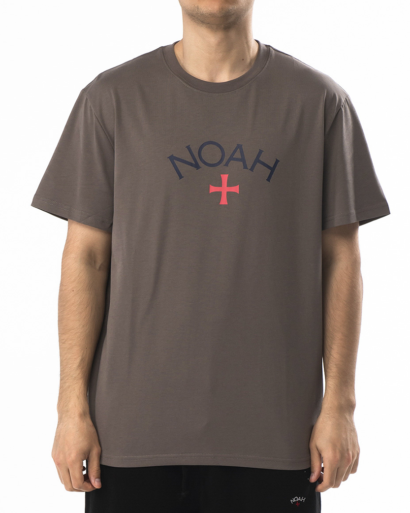 Футболка від американського бренду NOAH у темно-зеленому кольорі. Виконана у класичному крої та має короткі рукава. На грудях футболки розташований логотип NOAH у темно-синьому та червоному кольорах. Футболка виготовлена з бавовни.