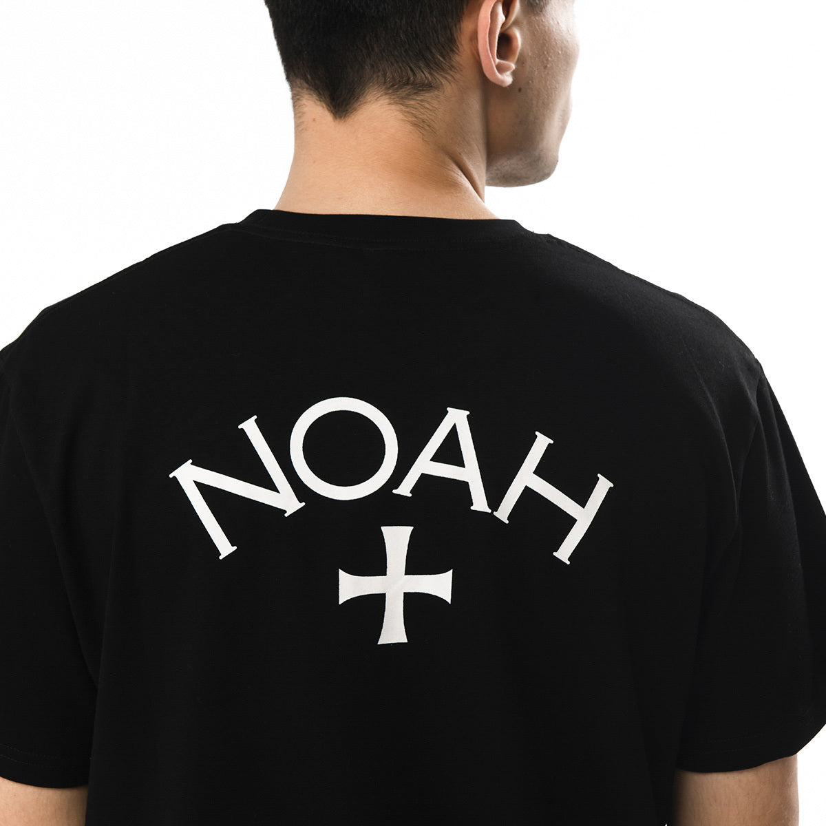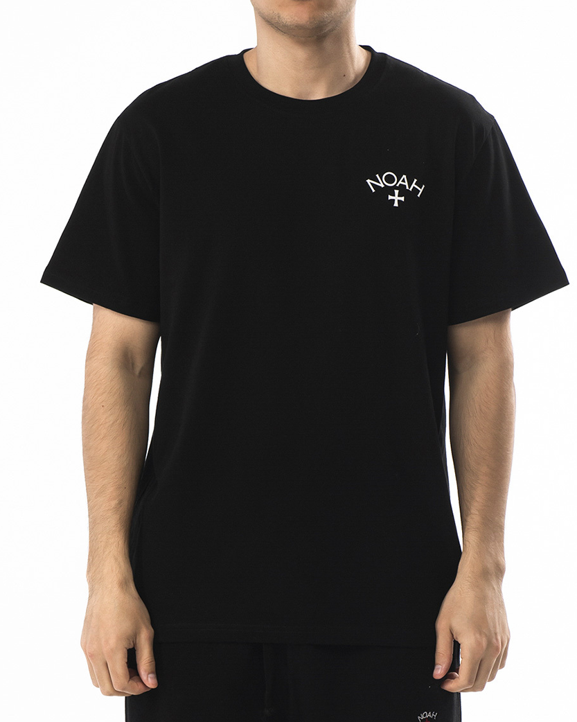 Футболка від американського бренду NOAH. Виконана у чорному кольорі та має простий та зручний крій. На грудях розташований логотип NOAH у білому кольорі, на спині розташувався графічний принт логотипу бренду. Футболка виготовлена з бавовни, що забезпечує комфорт при носінні.