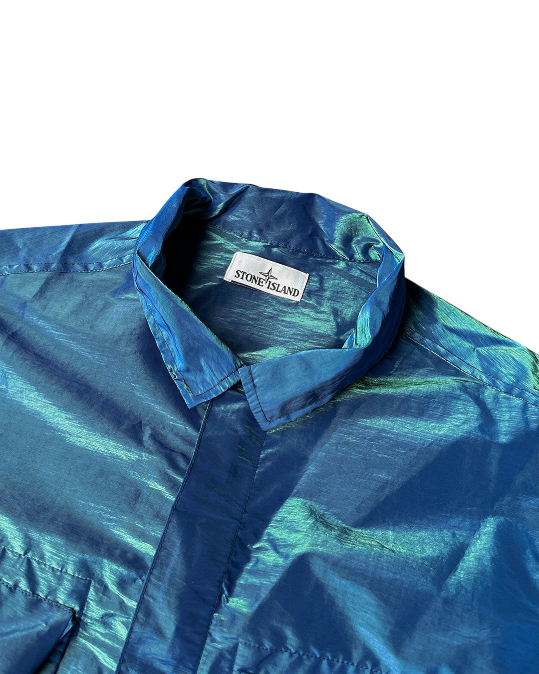 Сорочка з тканини Nylon Metal. Металізований, переливчастий ефект Nylon Metal - однієї з найуніверсальніших тканин, розроблених текстильною лабораторією бренду STONE ISLAND. Доповнюється різнокольоровими відтінками завдяки забарвленню ниток. Готовий виріб піддається двоступеневій процедурі фарбування, в результаті якої підкреслюються колірні переливи моделі.