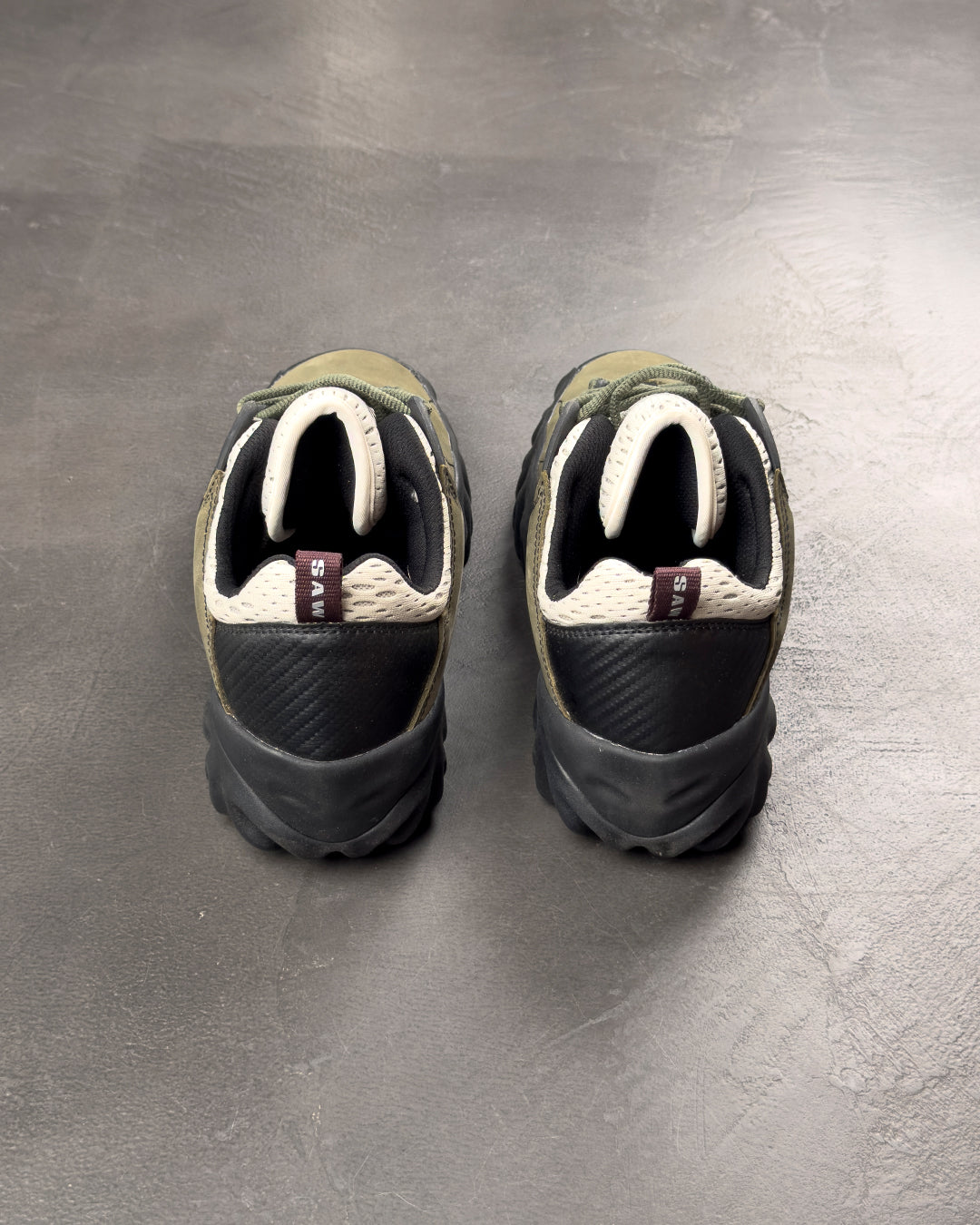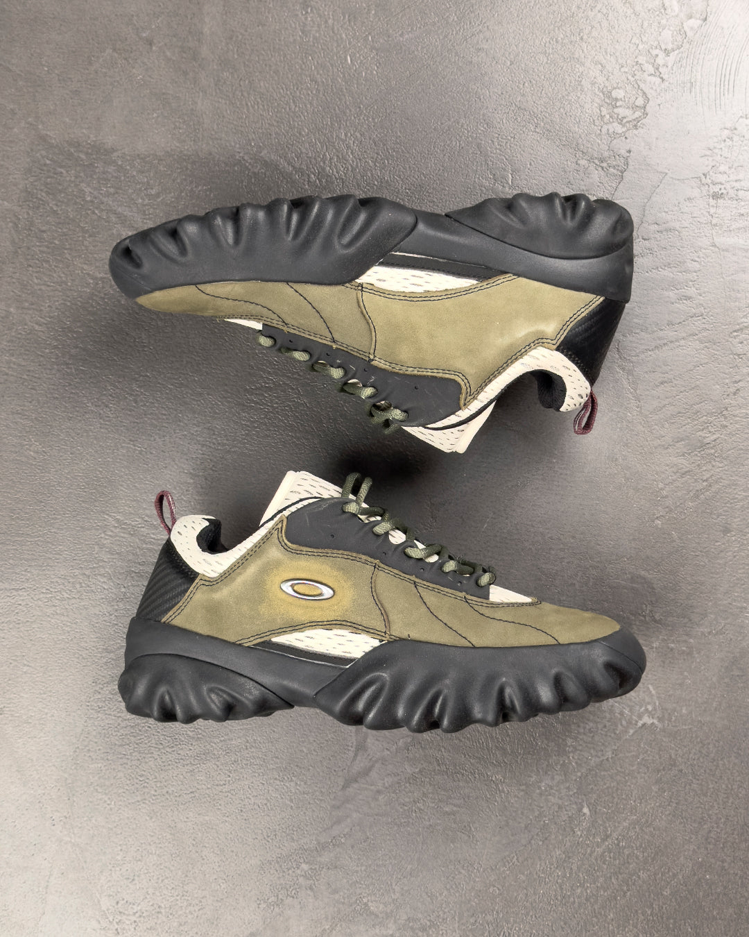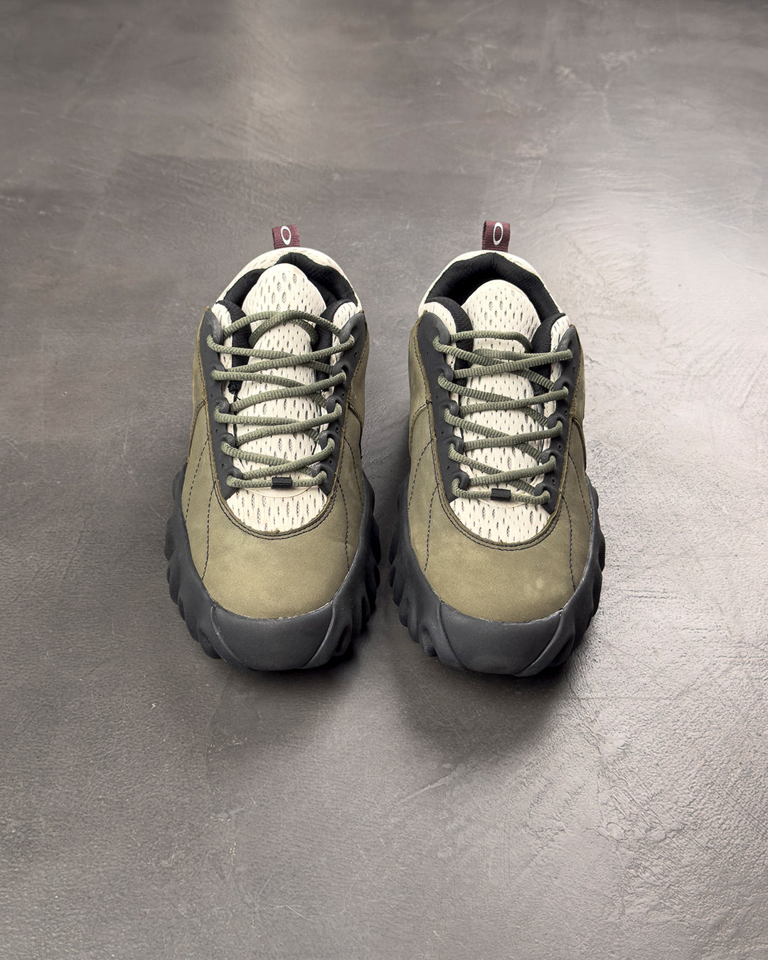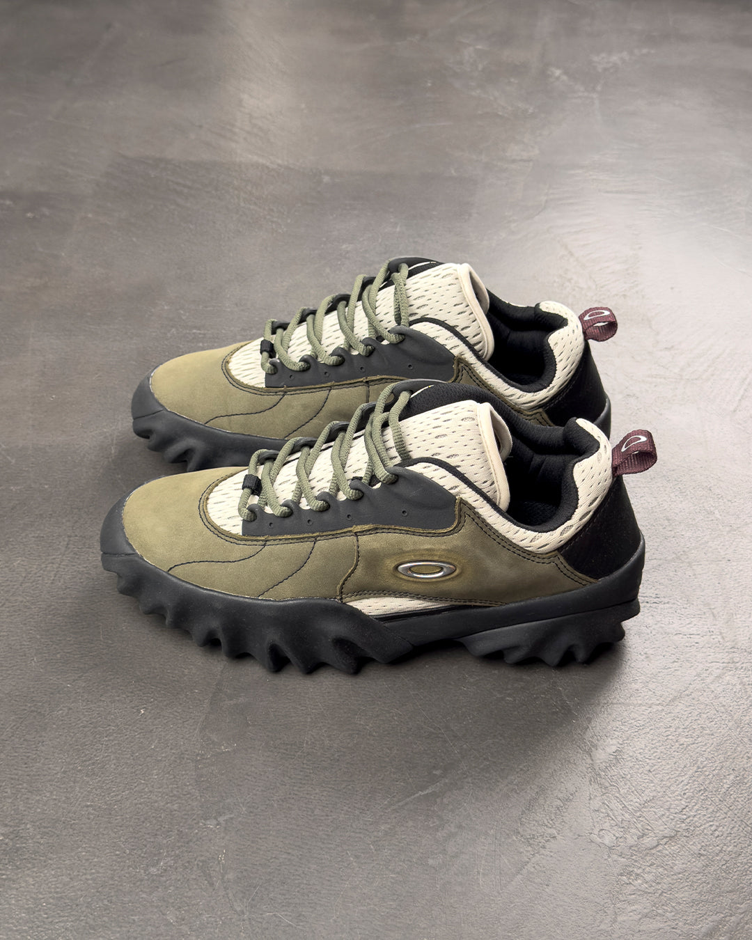 Команда Oakley Factory продовжує відроджувати модель Chop Saw. Силует початку 2000-х отримав верх з нубуку з елементами неопрену, що забезпечує комфортну посадку. Об'ємні кросівки з конструкцією, що нагадує шкарпетку, мають ребристу гумову підошву для кращого зчеплення з поверхнею.