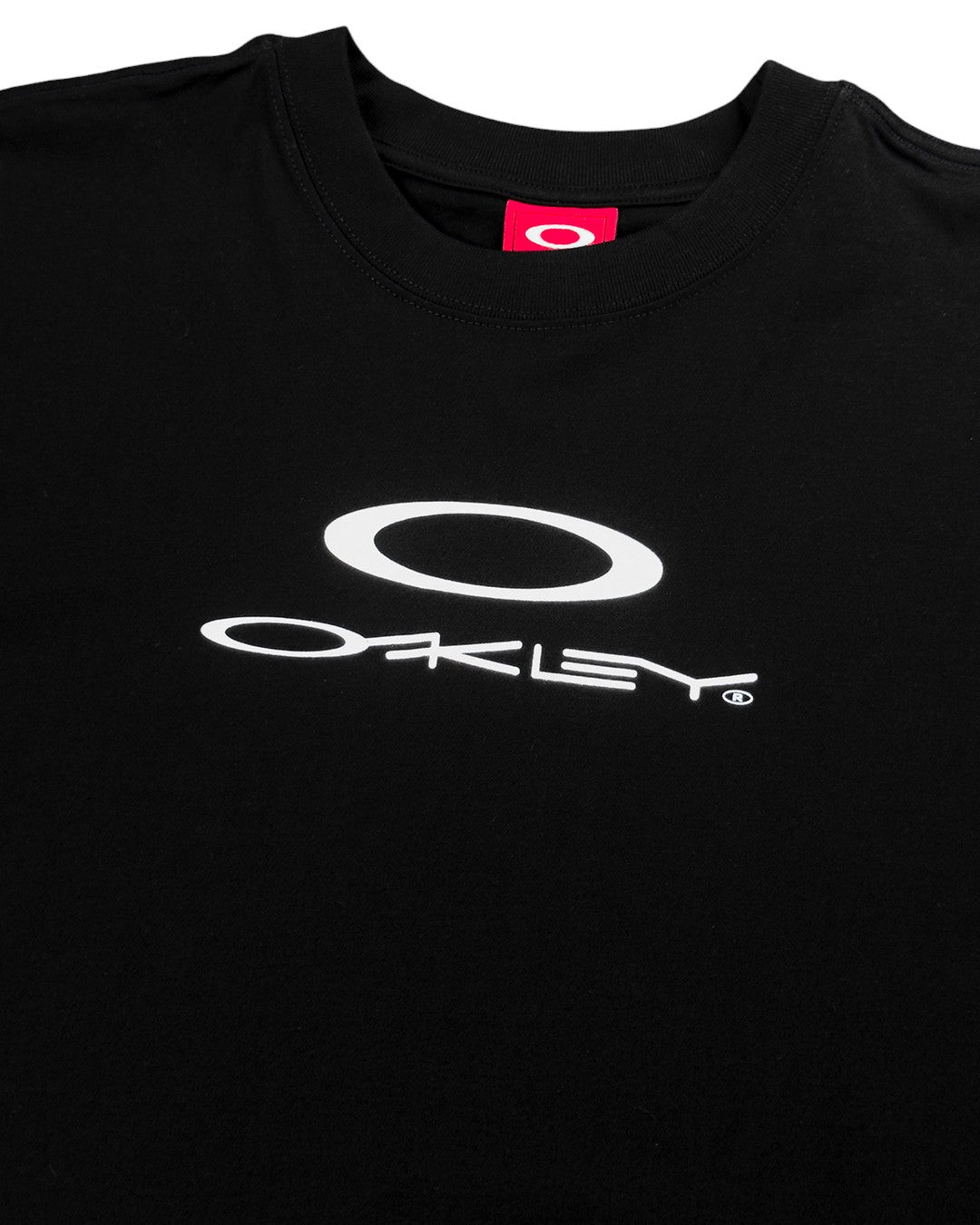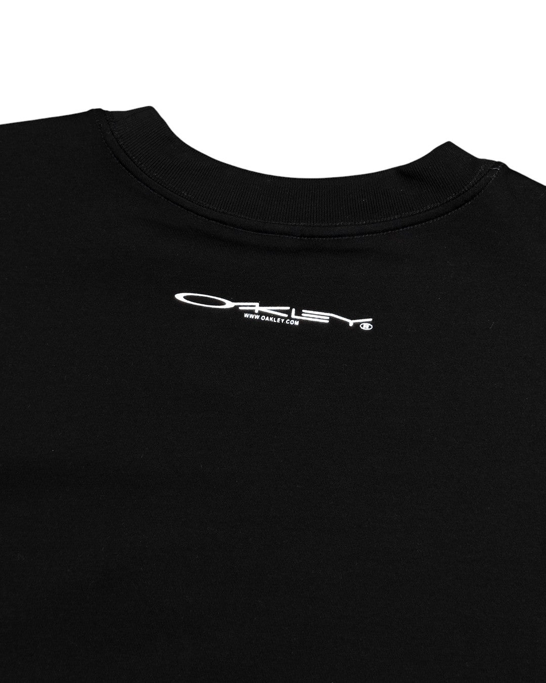 Вінтажна чорна футболка від Oakley з друкованим контрастним брендингом спереду та ззаду. Має вільний крій та виготовлена з важкої бавовняної тканини.