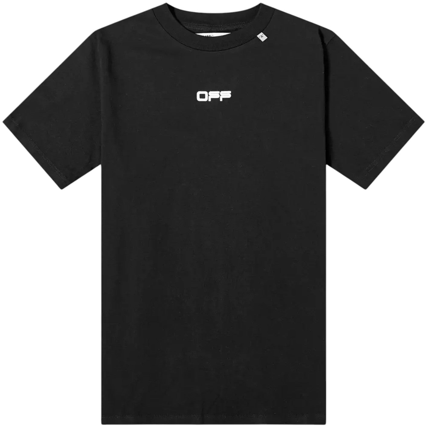 Футболка з коротким рукавом від OFF-WHITE виготовлена з бавовняного трикотажу та має ребристу горловину. На грудях прикрашена фірмовим написом "OFF" і великим графічним принтом у чорно-білих відтінках на спині.