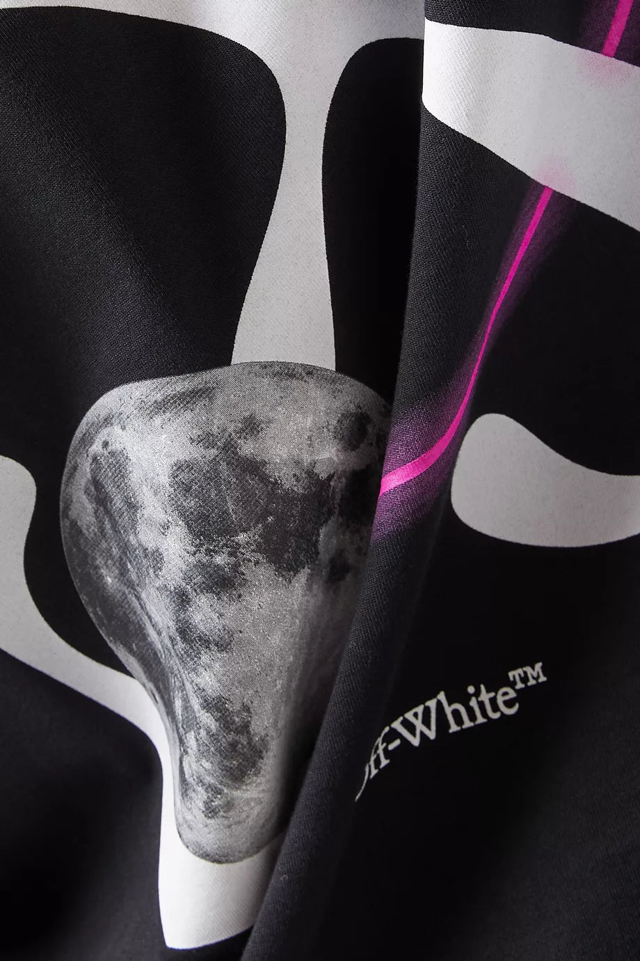 Футболка Off-White Double Moon Arrow Skate — це стильний варіант для поціновувачів стрітстайлу, із характерним брендовим дизайном. Виготовлена з 100% бавовняного джерсі, модель має круглий виріз, короткі рукава та прямий низ. На лицьовій частині розташований мінімалістичний принт із написом «OFF», а на спині — великий графічний мотив із подвійним місяцем і стрілками, що створює динамічний акцент.