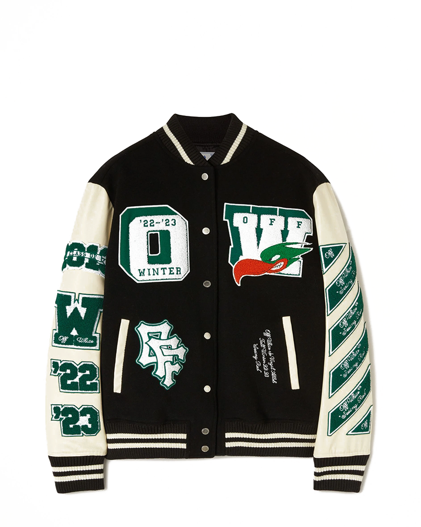 Off-White Embroidered Patches Varsity Jacket Black/Green
