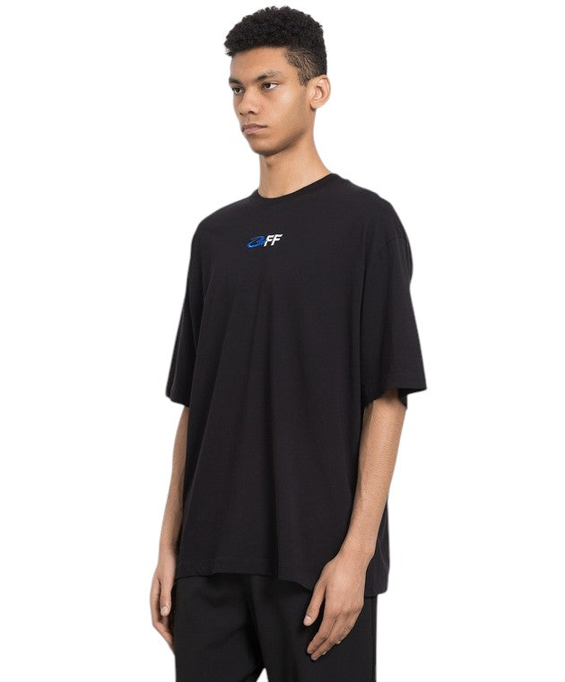 Ця чорна футболка виготовлена з бавовни, має круглий виріз горловини, доповнена вишитим логотипом на грудях та принтом на спині.
