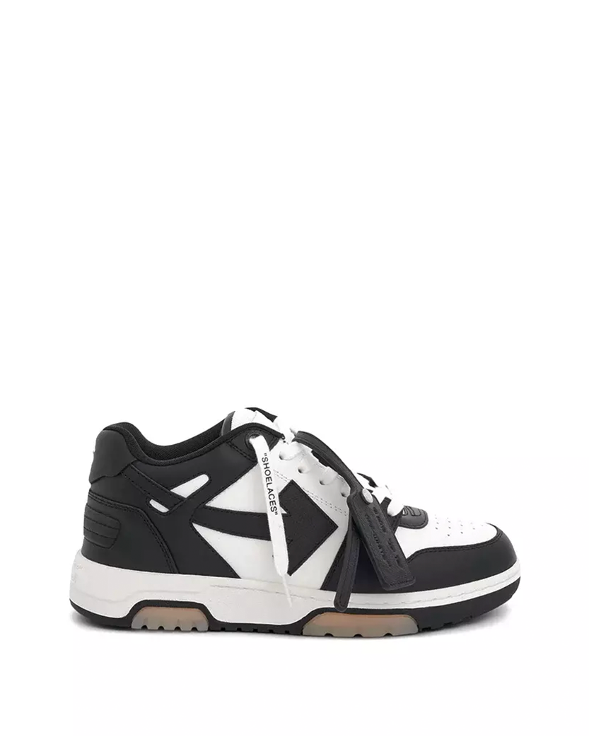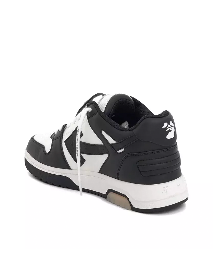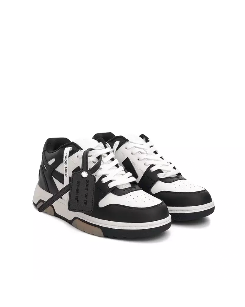 Модель Off White Out Of Office "OOO" Sneakers Black-White натхненна баскетбольними та біговими кросівками, створюючи силует, що поєднує в собі естетику 80-х та 90-х років. Напис на шнурках робить бренд кросівок миттєво впізнаваним, а ці деталі надають йому унікальності.