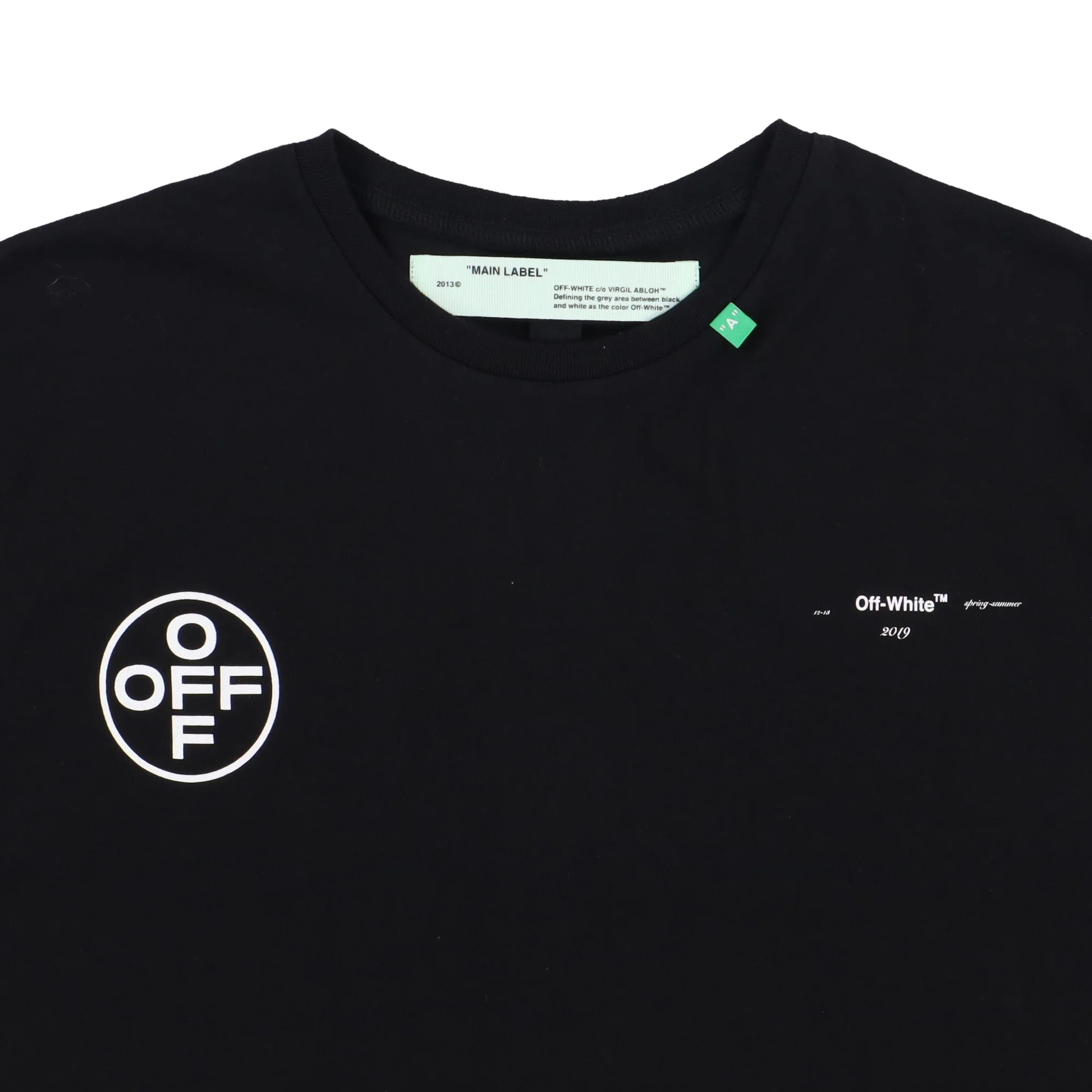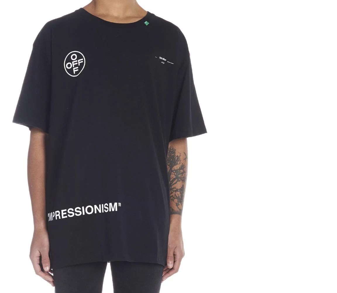 Бренд Off-White Вірджіла Абло вже давно відомий своїм підходом до стилю "зроби сам". Такий самий підхід був використаний і з цією чорною бавовняною футболкою з лініями, намальованими аерозольною фарбою, і зображеними стрілками ззаду. Логотип лейбла зображений спереду для оздоблення.