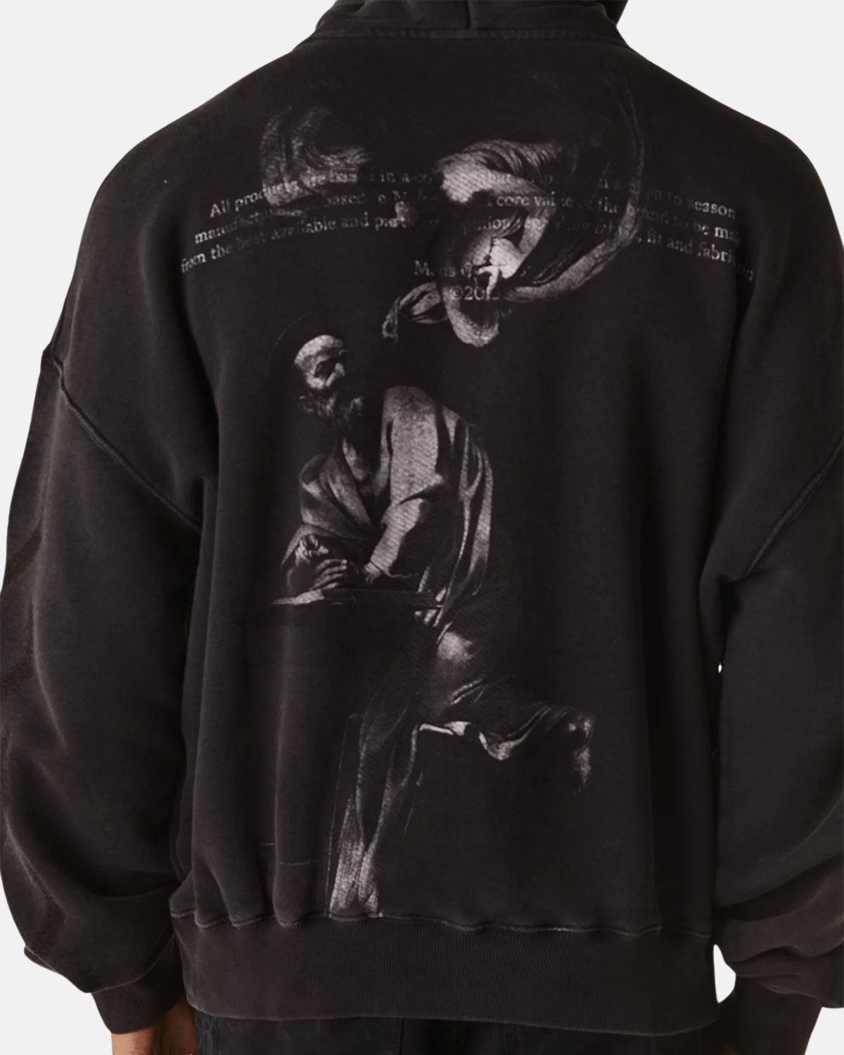 Це худі Off-White St. Matthew Cotton Hoodie поєднує в собі м'якість бавовни та невимушений, розслаблений крій. Витончений логотип на грудях поєднується з принтованою деталлю на спині, а капюшон зі шнурком і кишеня-кенгуру підвищують функціональність. Спущені плечі та ребристі краї доповнюють цей базовий елемент вуличного одягу.