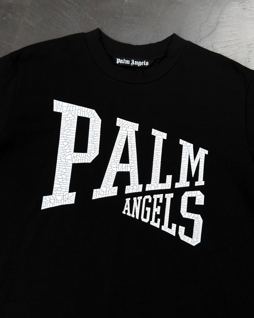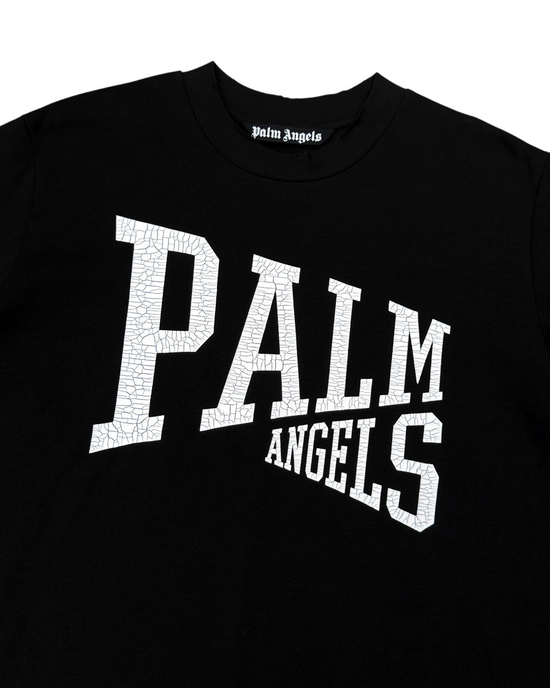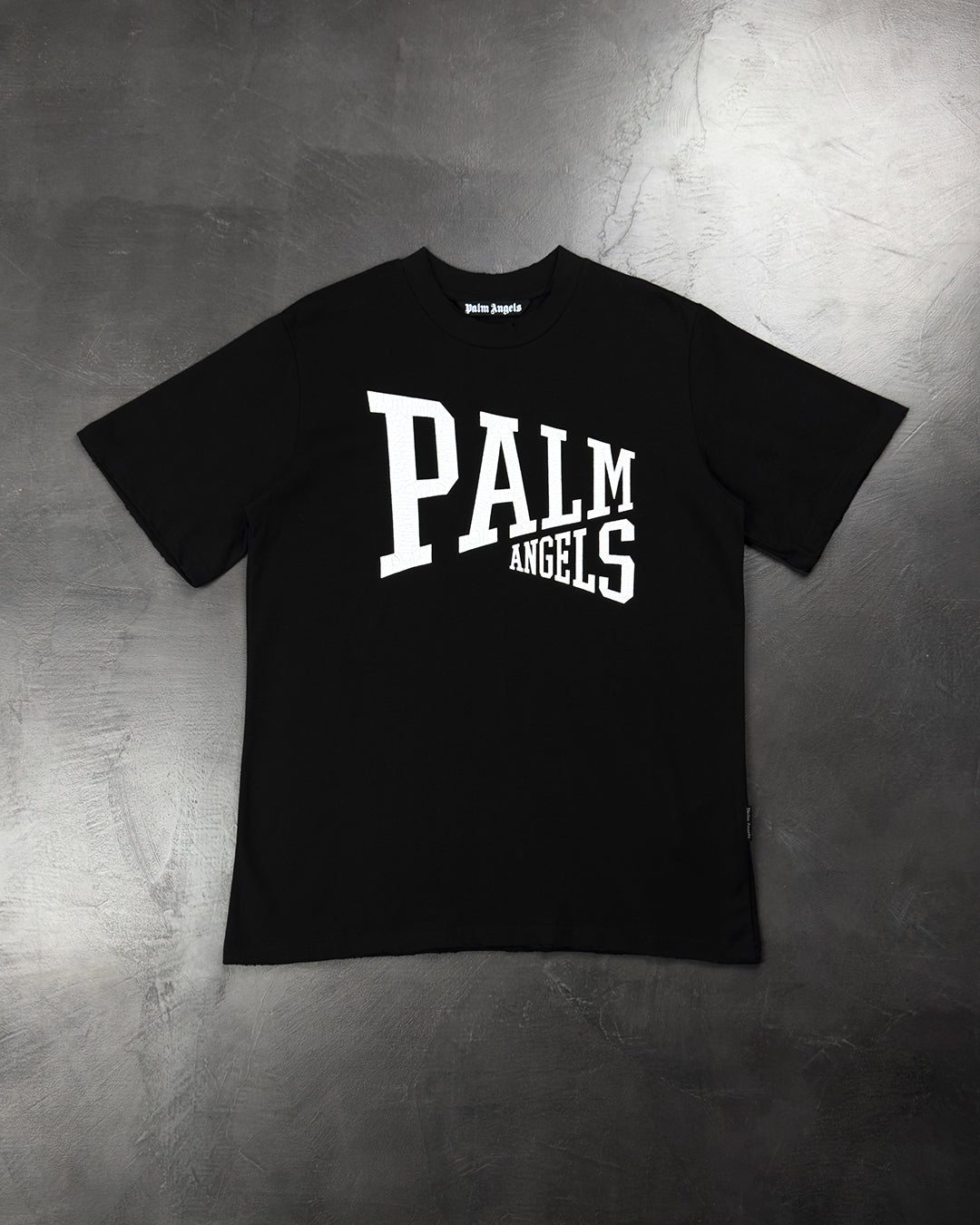Ця футболка, розроблена дизайнерами Palm Angels, запозичила вінтажну естетику та кольорову гаму, щоб створити цілком сучасний виріб. Виготовлена в Італії зі 100% бавовни, футболка має оверсайз-силует з круглою горловиною, короткими рукавами та прямим подолом. Спереду - логотип бренду, виконаний шрифтом, натхненним американською спортивною формою минулих десятиліть.