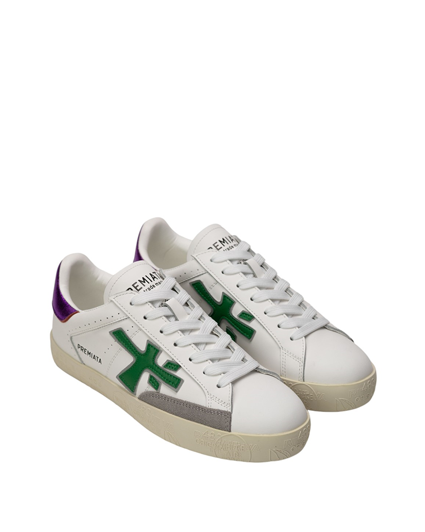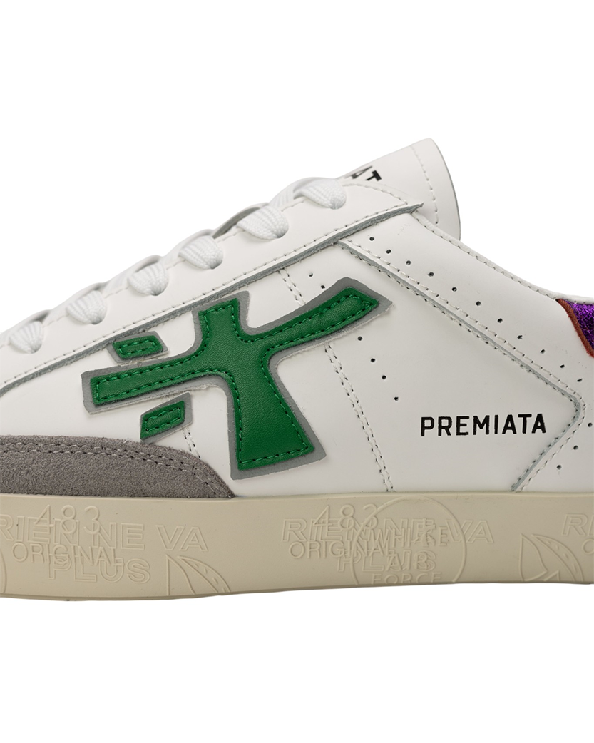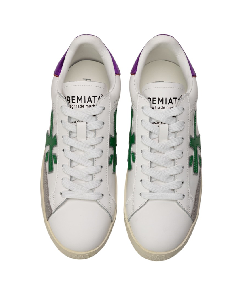 Кросівки Premiata Stevend — це сучасна інтерпретація класичного міського стилю з характерною для бренду увагою до деталей. Модель має низький силует з контрастними вставками та легким вінтажним ефектом, доповнена перфорованими деталями, культовим логотипом та фірмовою підошвою з гуми. Усередині — м’яка підкладка для комфорту, а універсальний дизайн робить ці кросівки ідеальними як для повсякденних образів, так і для поєднання з більш вишуканим одягом.
