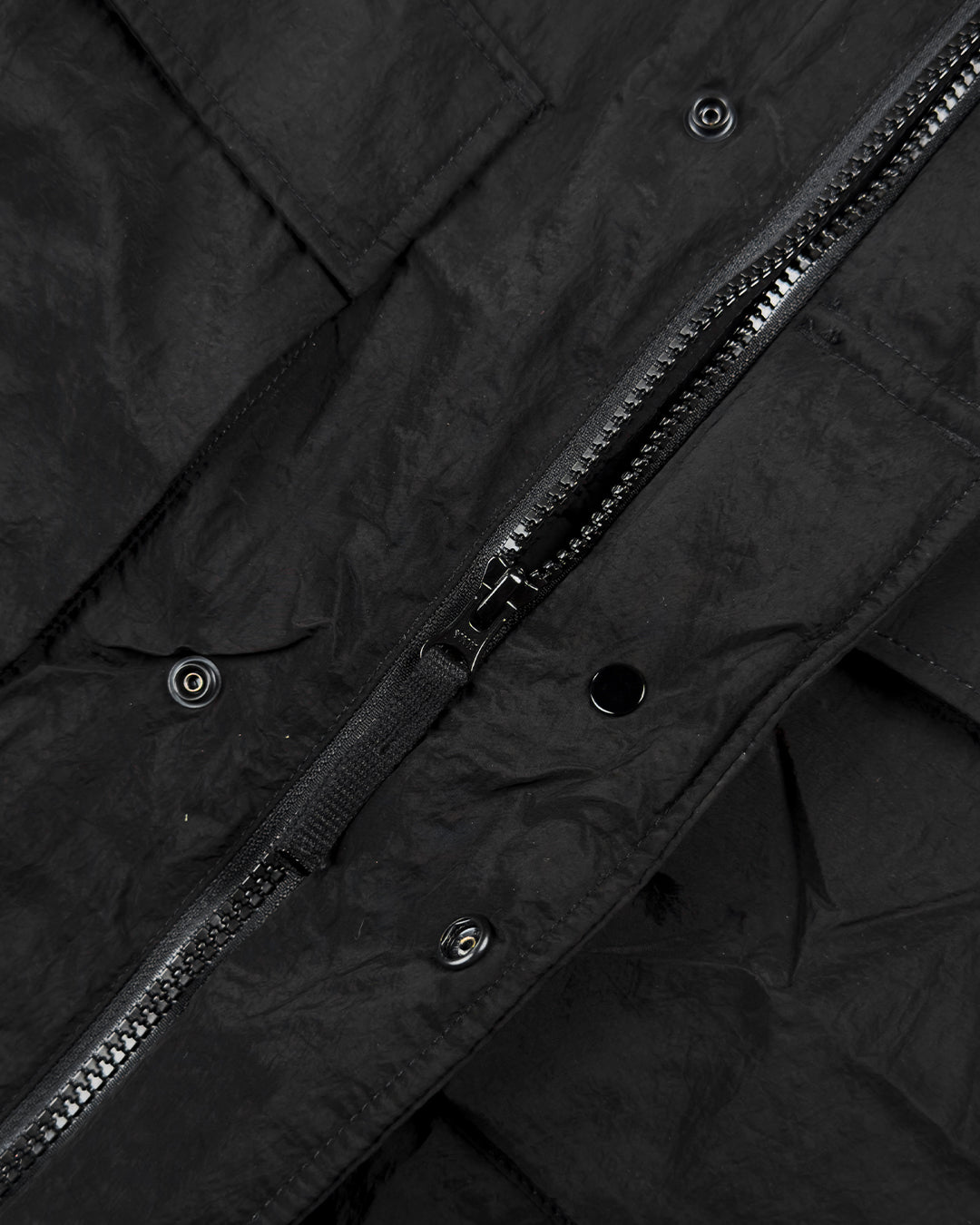 Дві кишені на грудях з клапаном та одна потайна кишеня на застібці. Ремінець із застібкою, що утримує значок Stone Island по центру на грудях. Дві бічні кишені для рук з потайною застібкою на блискавку. Еластичні манжети на кнопках. Застібається на двосторонню застібку-блискавку, приховану під потайною планкою на кнопках.