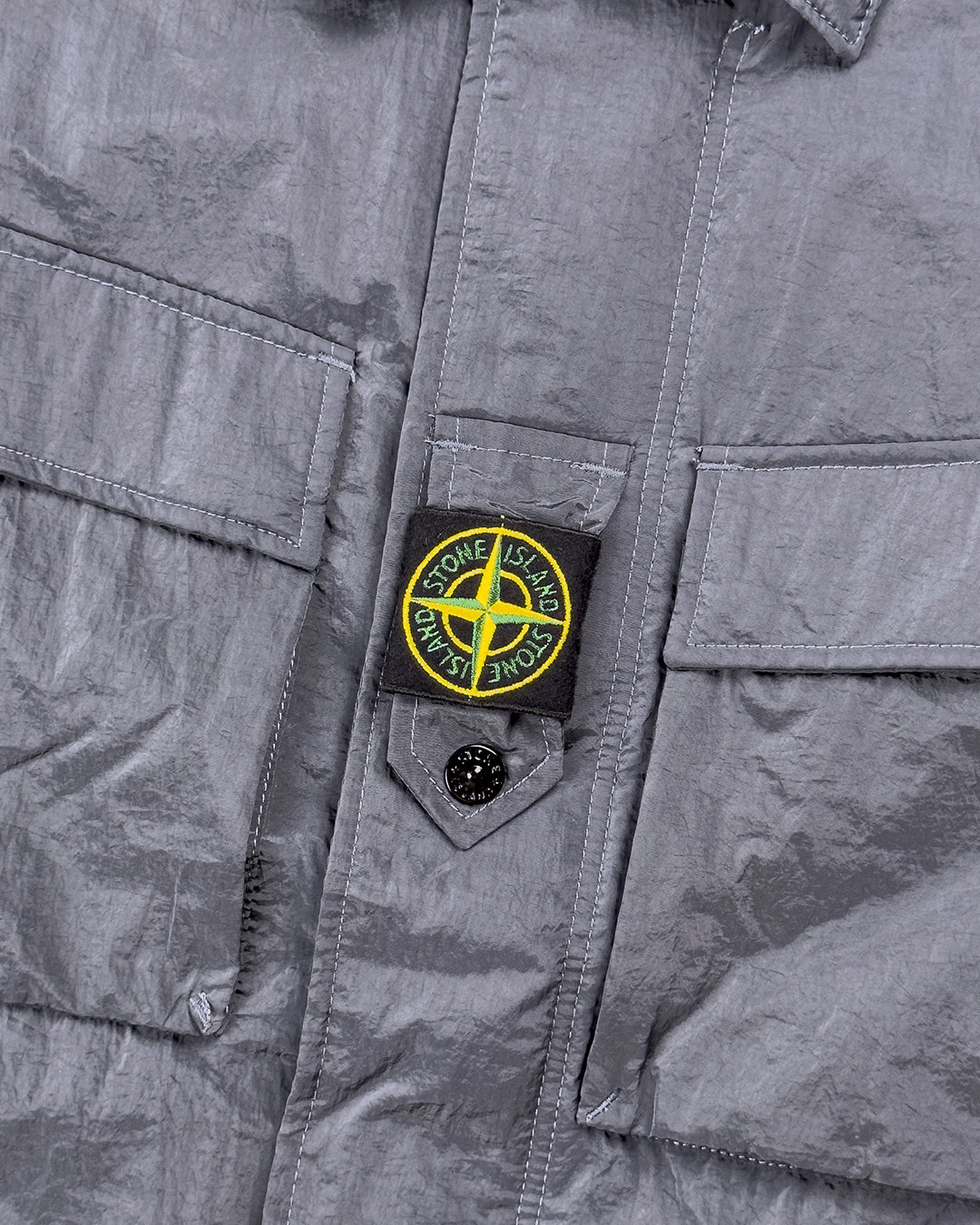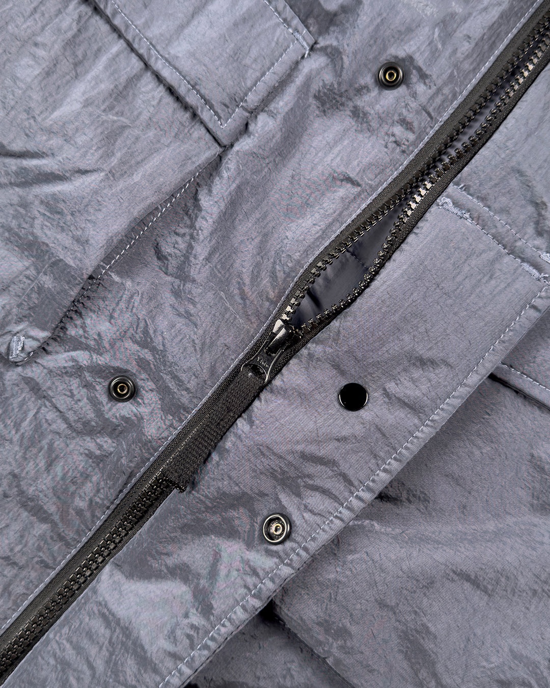 Дві кишені на грудях з клапаном та одна потайна кишеня на застібці. Ремінець із застібкою, що утримує значок Stone Island по центру на грудях. Дві бічні кишені для рук з потайною застібкою на блискавку. Еластичні манжети на кнопках. Застібається на двосторонню застібку-блискавку, приховану під потайною планкою на кнопках.
