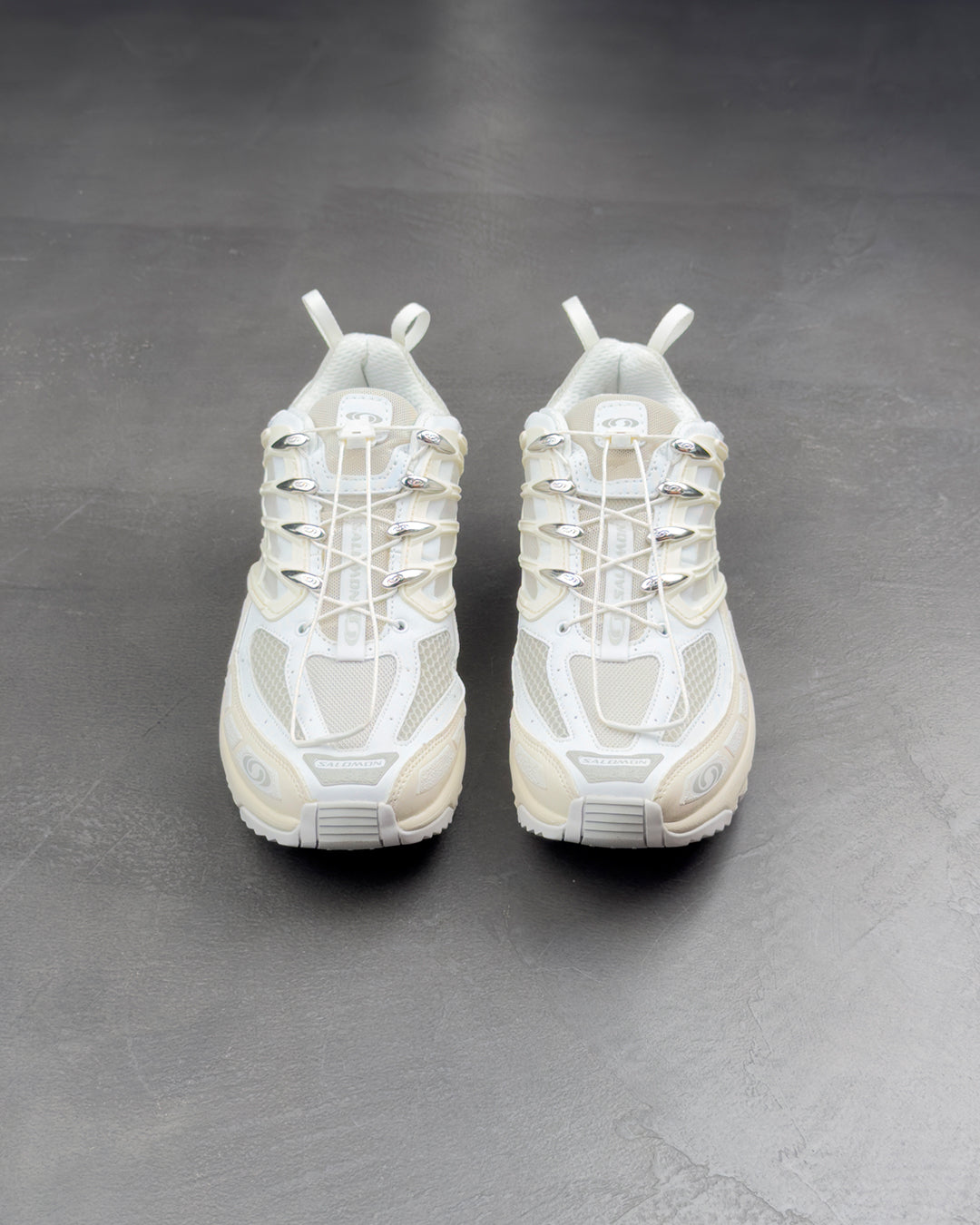 Salomon залишається вірним архівному дизайну середини 2000-х років з ACS Pro Advanced. Ця пара взуття в кольорах крижаного білого і ванільного доповнена дихаючою тривимірною сіткою у верхній частині для оптимального повітропроникнення, а потім доповнена системою Agile Chassis™, що забезпечує виняткову стійкість на будь-якому типі місцевості. В інших областях технологія SensiFit™ підтримує стопу і забезпечує щільне та комфортне прилягання, що робить їх ідеальними для тривалого дня на стежках.