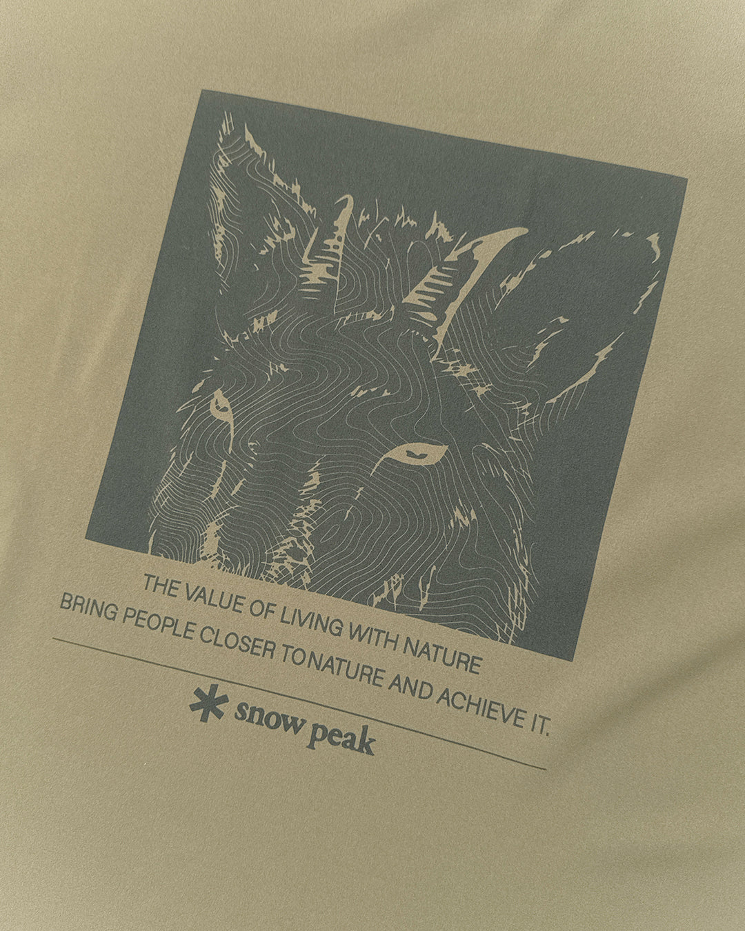 Футболка з принтом від Snow Peak, виготовлена з поліестеру - це водопоглинаюча та швидковисихаюча тканина, яка підходить для активного відпочинку на природі, наприклад, риболовлі в гірських струмках.