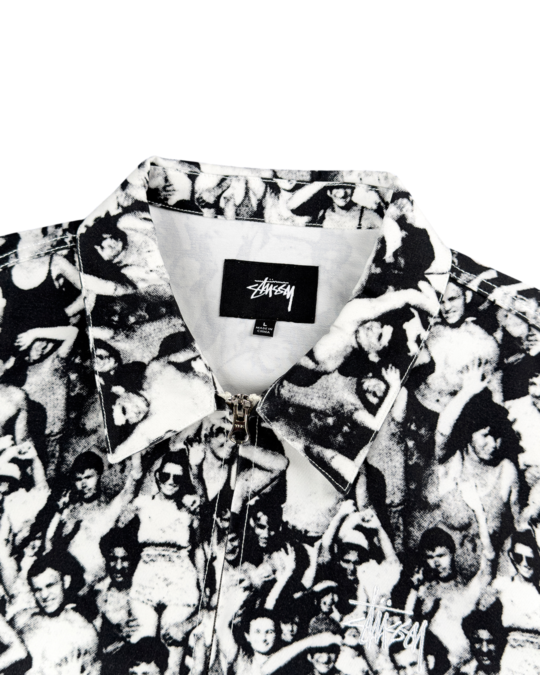 Куртка Beach Mob Bing від Stüssy. Виготовлена з бавовняної саржі з принтом. З відкладним коміром, застібкою на блискавку, вишивкою логотипу на грудях справа та двома бічними кишенями. Манжети на блискавці та прямий поділ. Одна внутрішня кишеня.