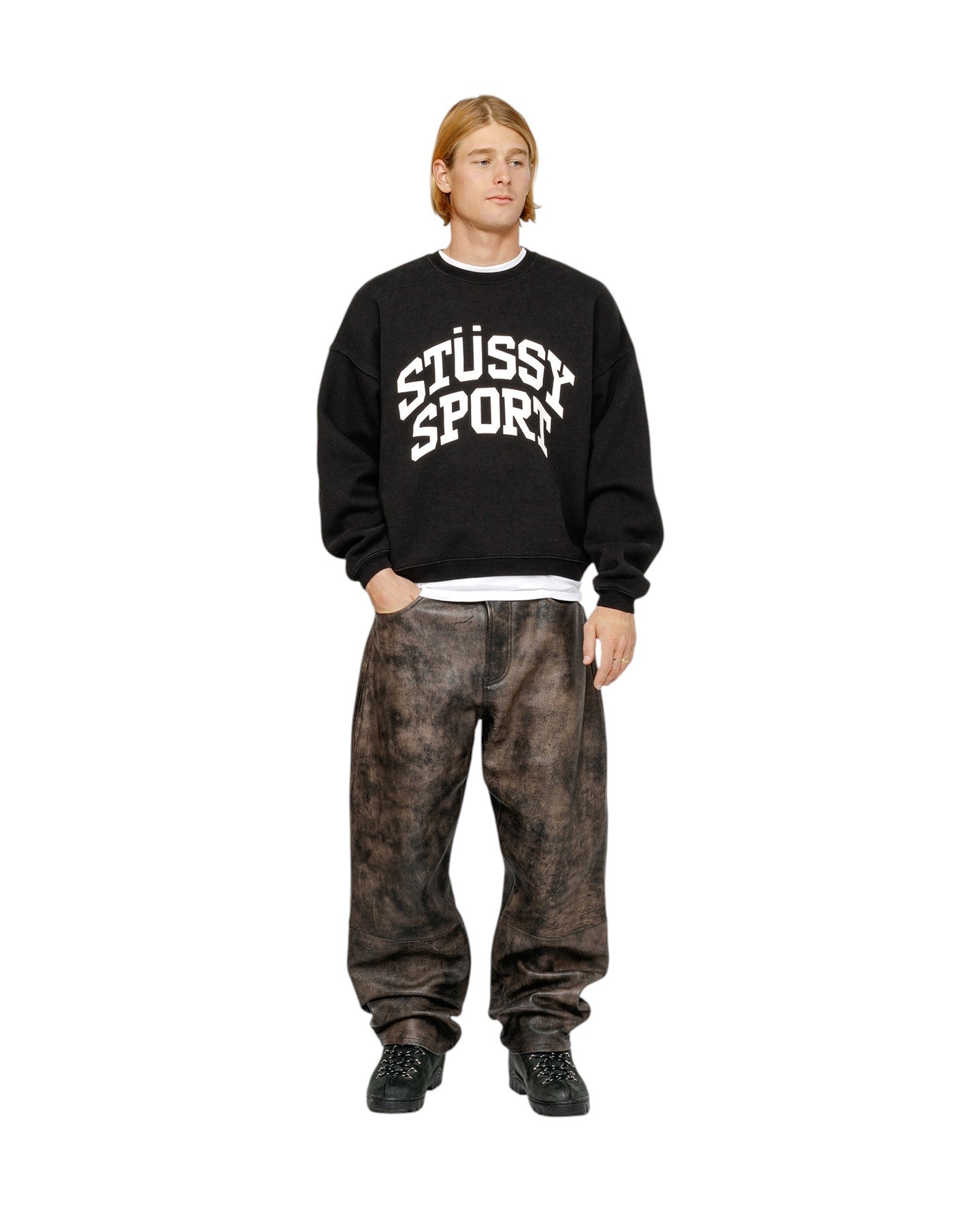 STUSSY Big Crackle Sport Crew Black