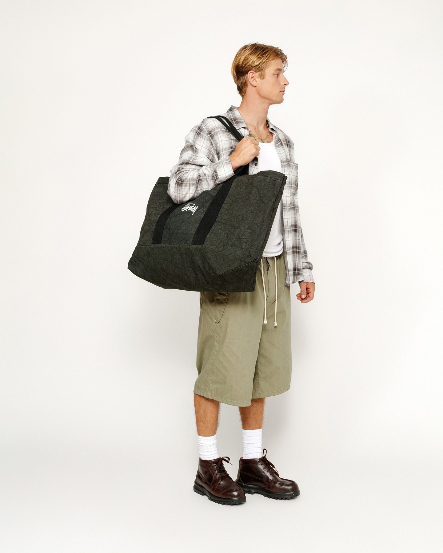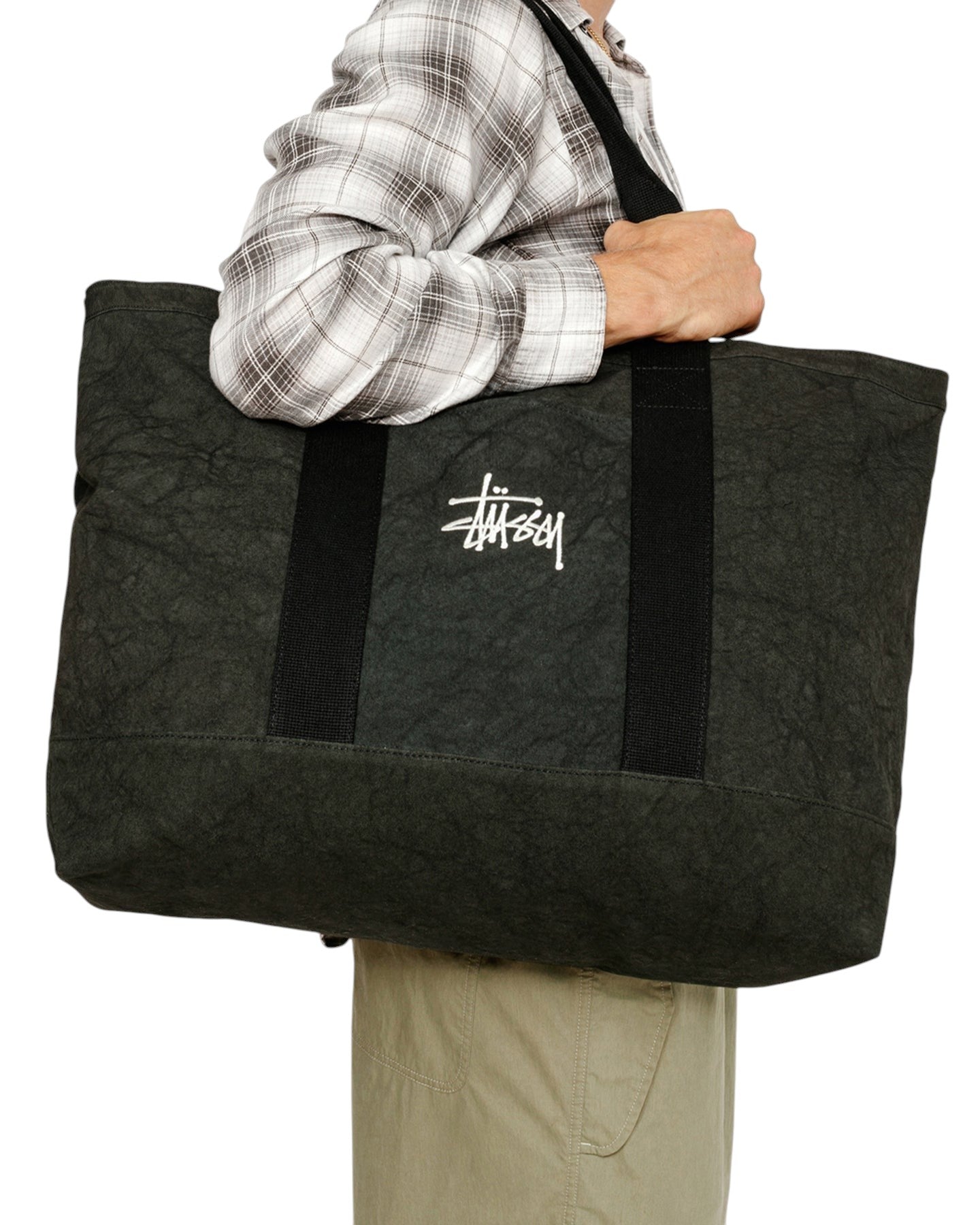 Велика сумка з бавовняного полотна. Має велике центральне відділення з внутрішньою кишенею для дрібниць та дві зовнішні кишені. З одного боку вишитий логотип Stüssy.