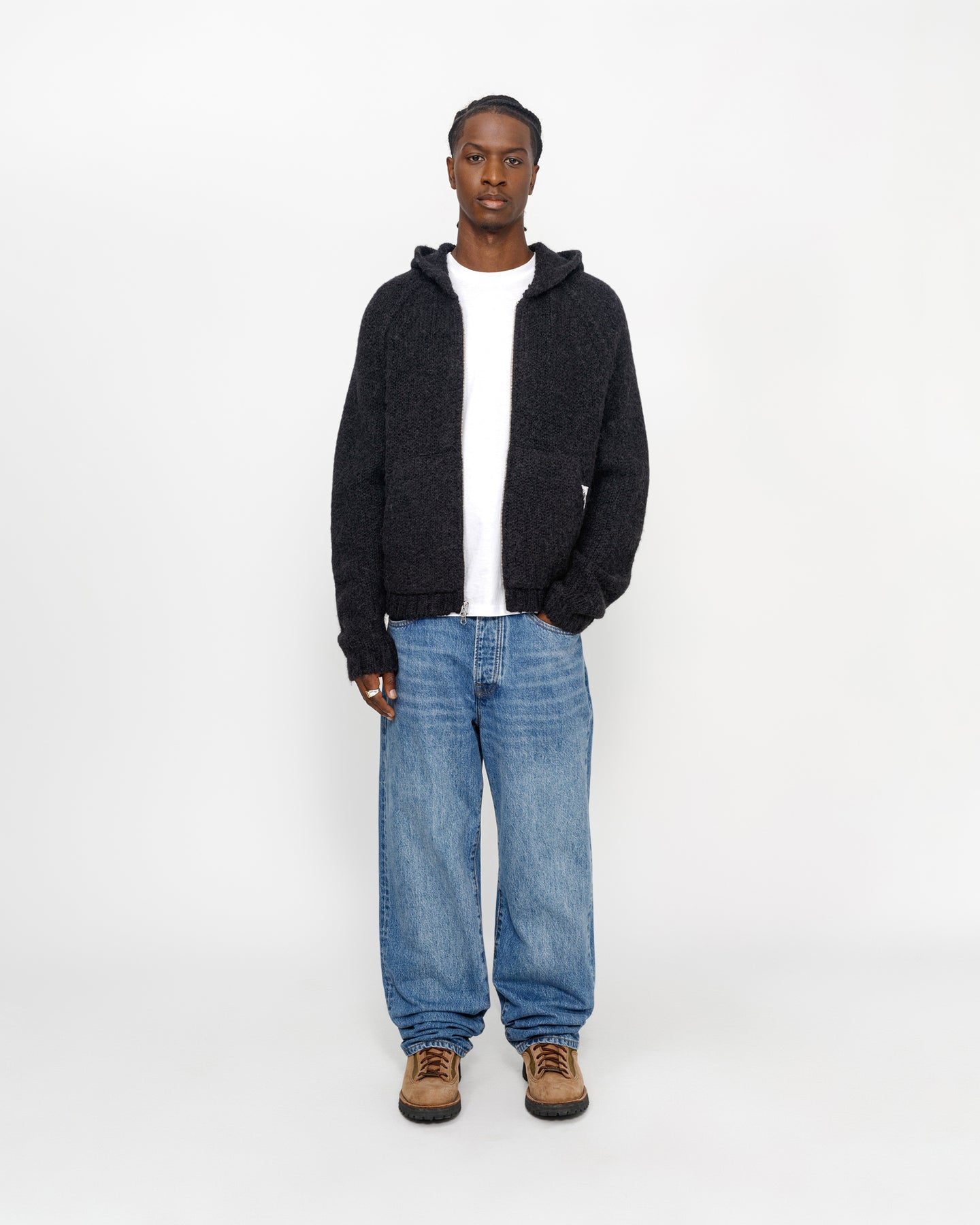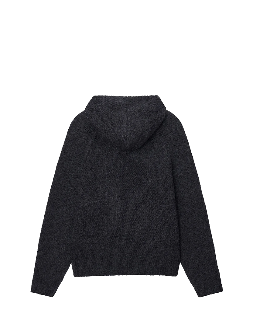 Невимушений светр з капюшоном і двосторонньою застібкою-блискавкою з грубої вовни альпаки. Етикетка Stüssy всередині лівої кишені.