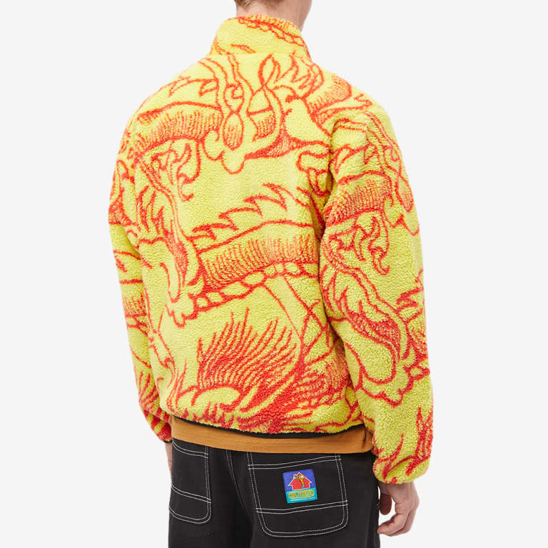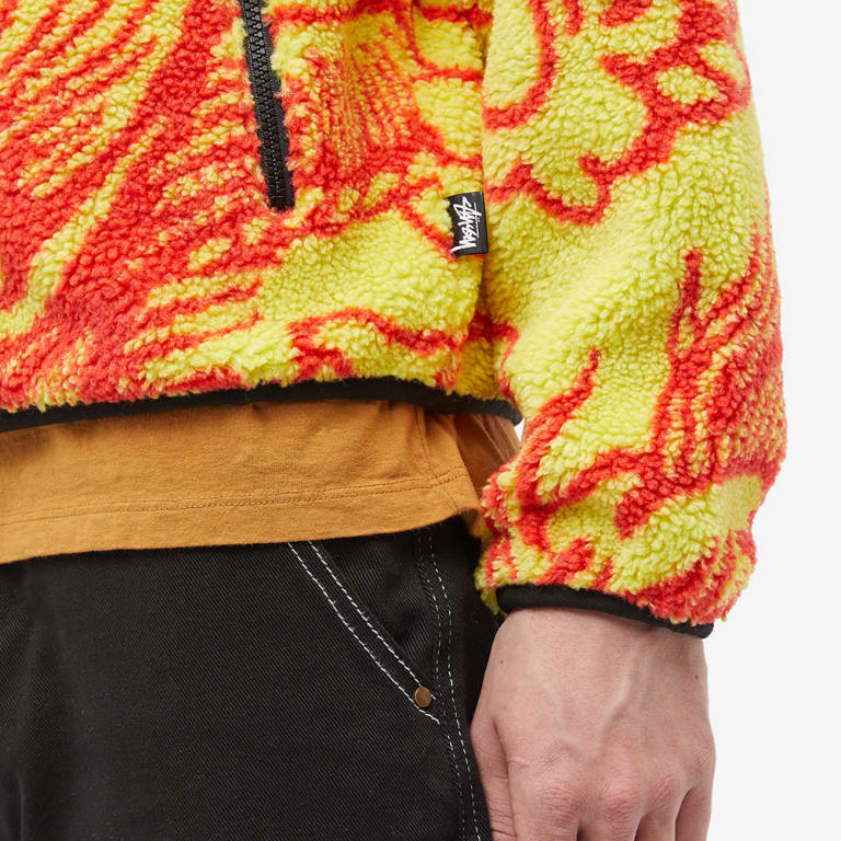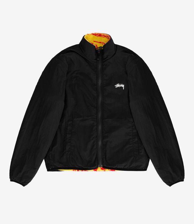 Двостороння куртка Stüssy, виготовлена з однієї сторони з шерстяного флісу з жакардовим малюнком та з нейлону з іншої сторони. Високий комір та двостороння застібка-блискавка для зручності, а вертикальні кишені з обох боків для ще більшої функціональності. Застібки-блискавки з лайкрою, манжети та поділ додають комфорту в носінні, а логотип Stüssy, надрукований на грудях, підкреслює автентичність та стиль бренду.