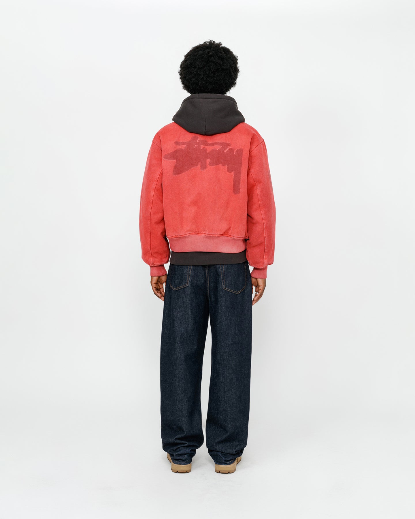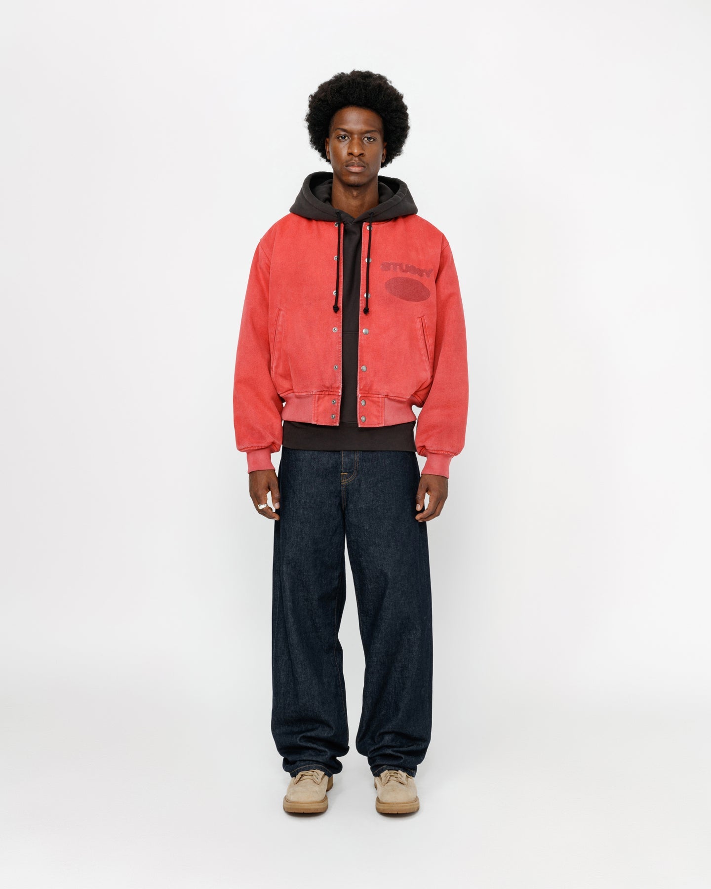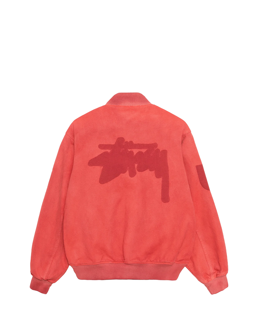 STUSSY Ghost Logo Canvas Varsity Jacket Red