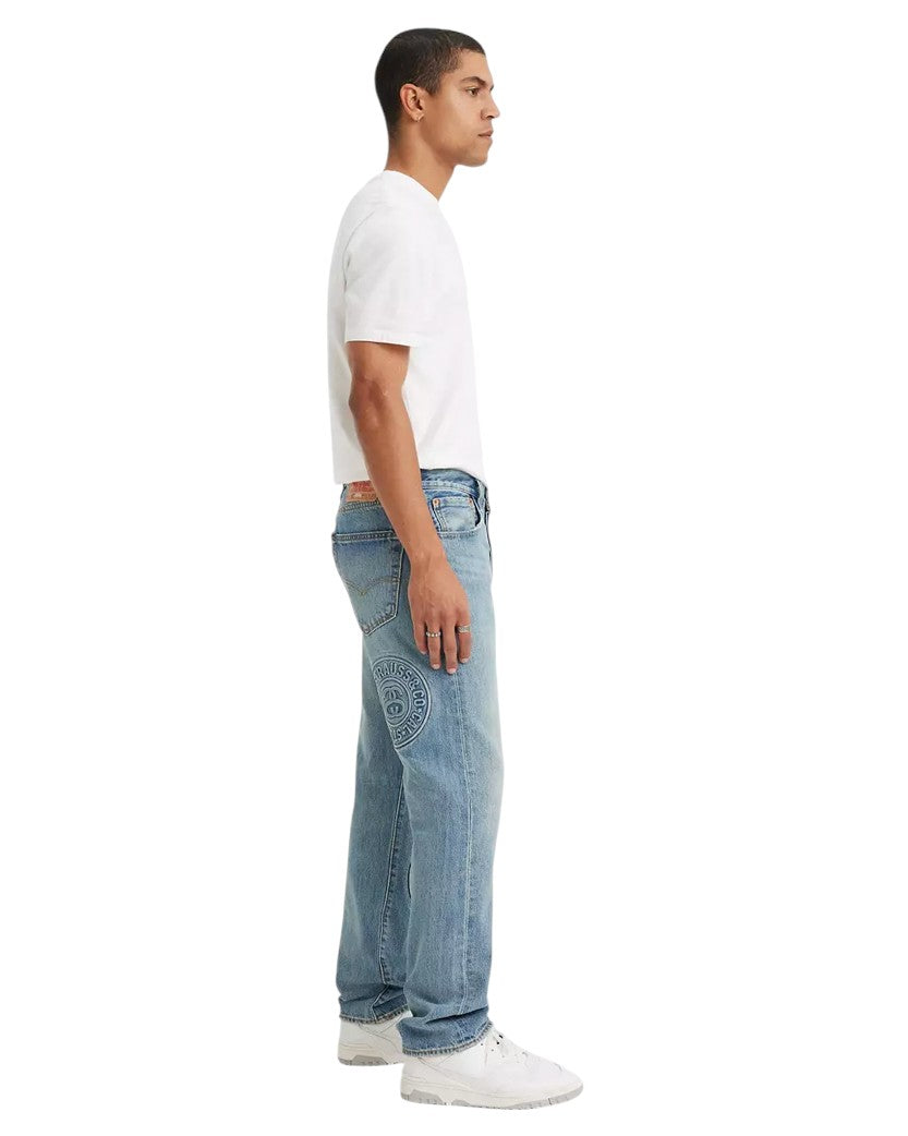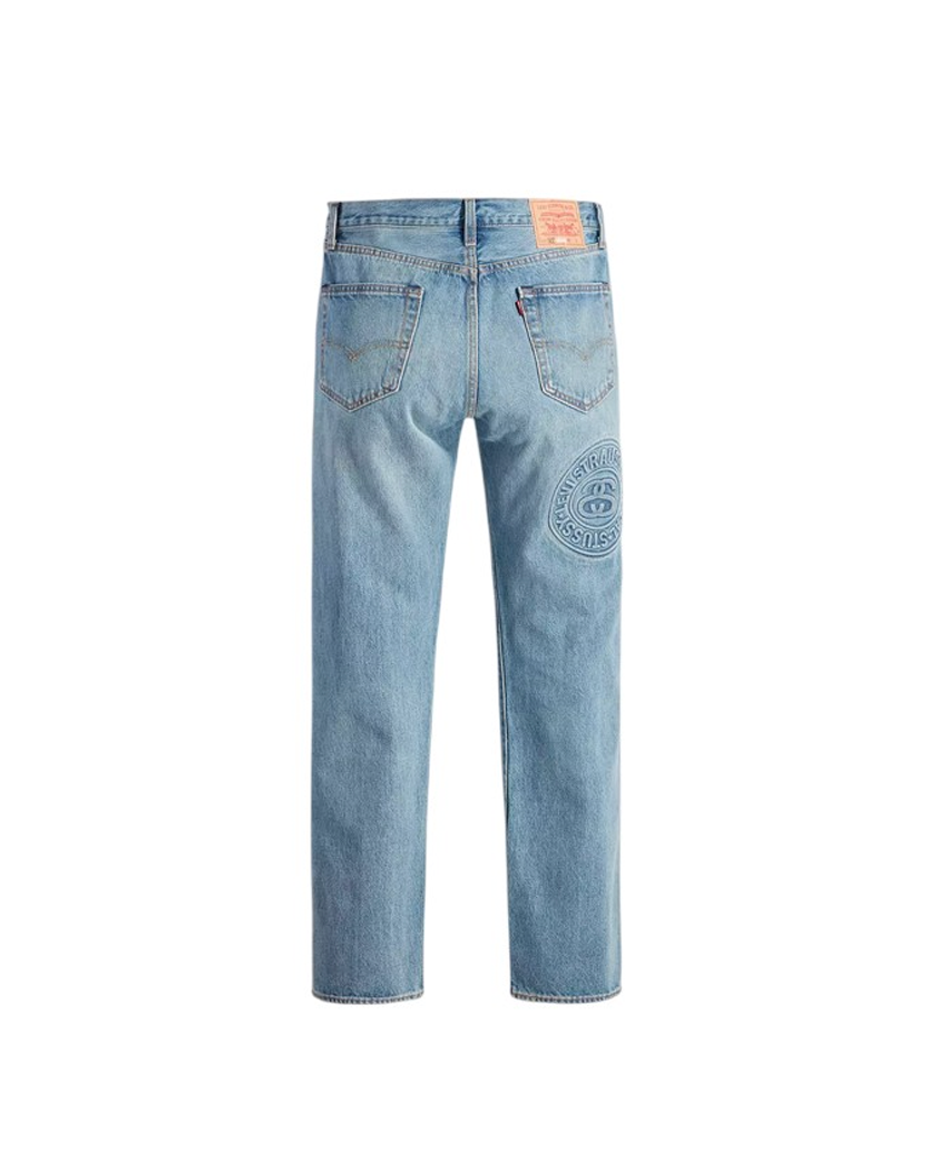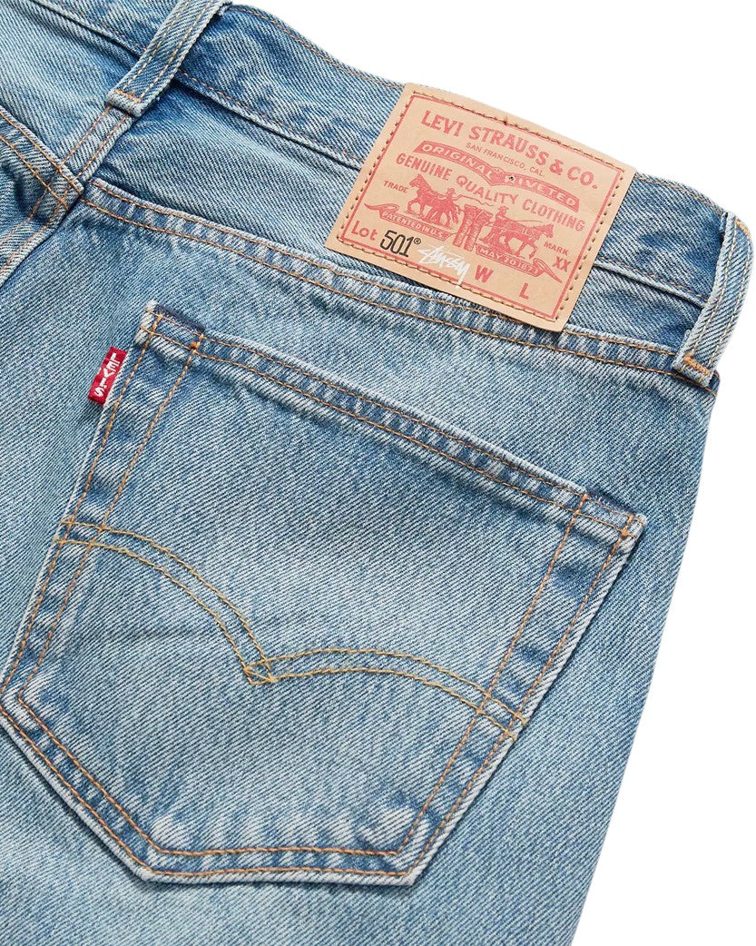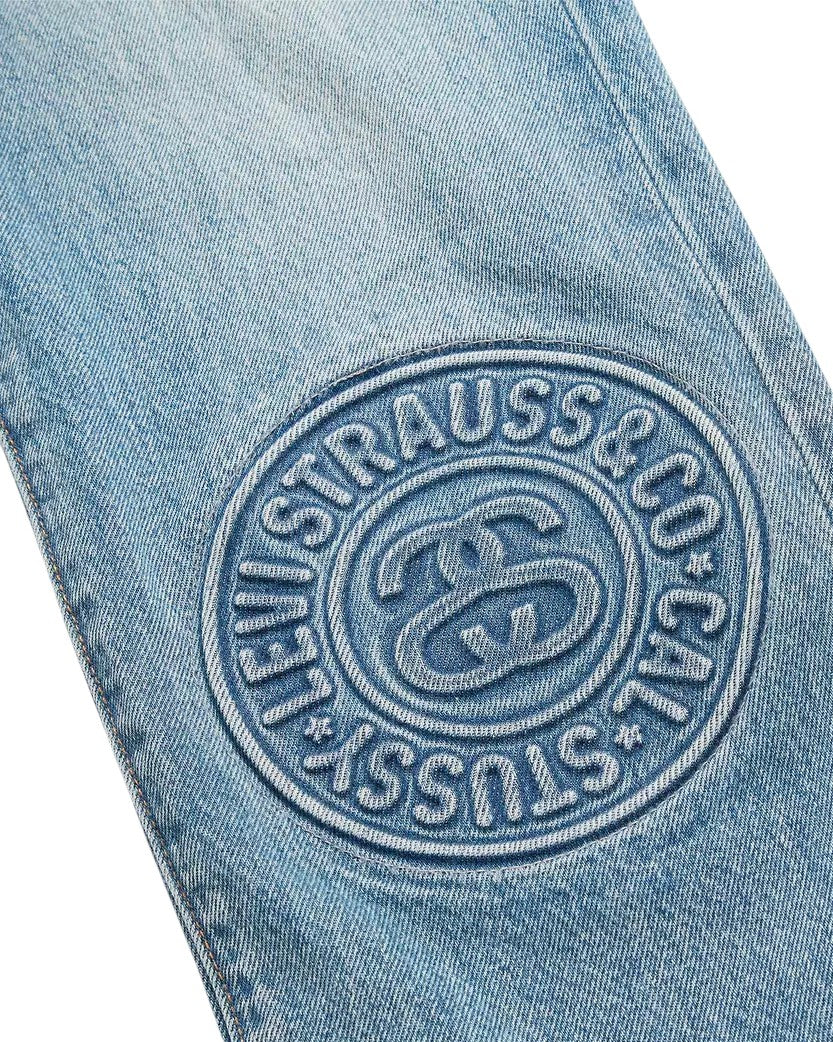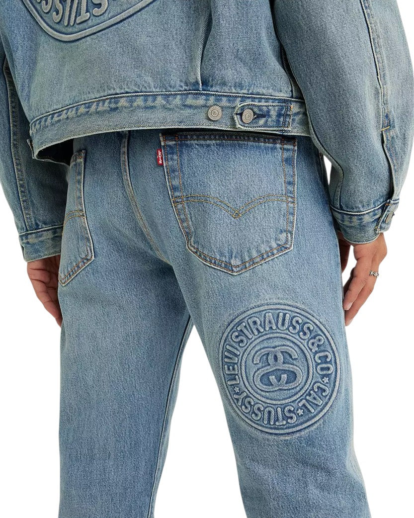Stussy та Levi's об'єднали зусилля, щоб створити ці джинси Embossed 501 - виготовлені з міцної, потертої тканини та оздоблені рельєфним ко-брендованим малюнком на передній лівій штанині та задній правій штанині.