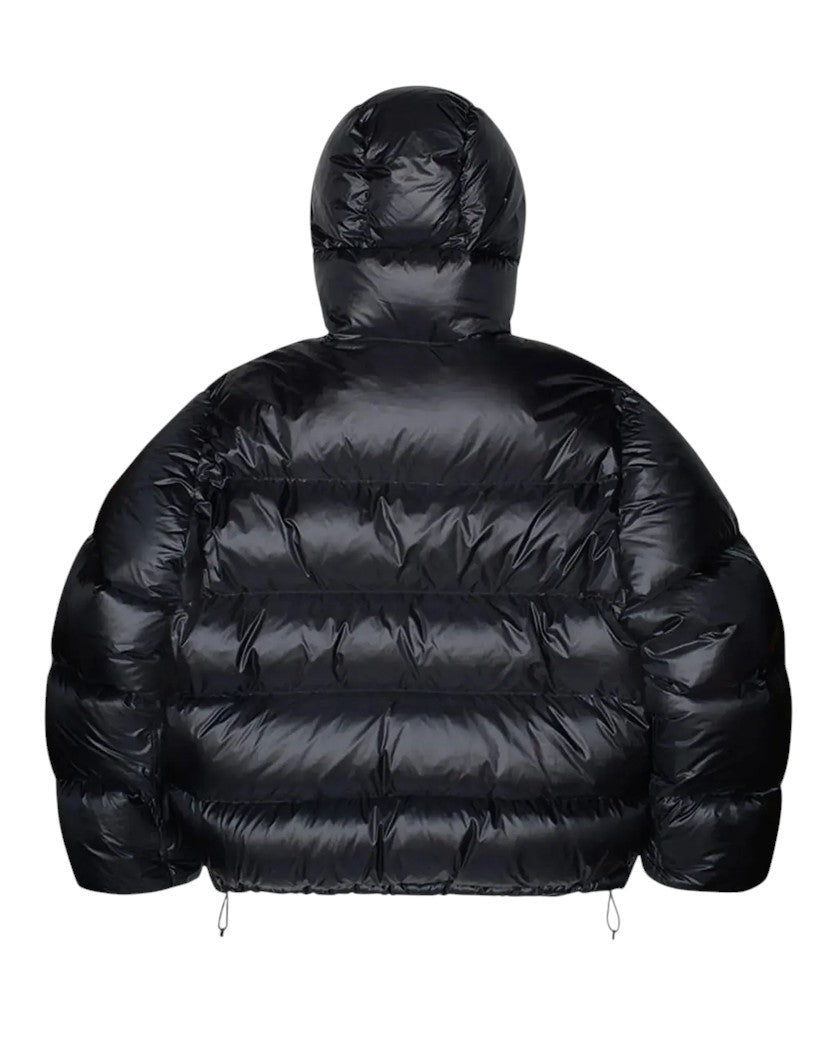 Парка від Stussy виготовлена з мікрорипстопу та качиного пуху щільністю 800. Має регульований капюшон та поділ зі шнуром, застібку-блискавку, передні кишені, внутрішні сітчасті кишені, еластичні манжети та контрастну підкладку з сеф-тканини. Пуховик доповнений вишитим логотипом Stüssy на грудях зліва.