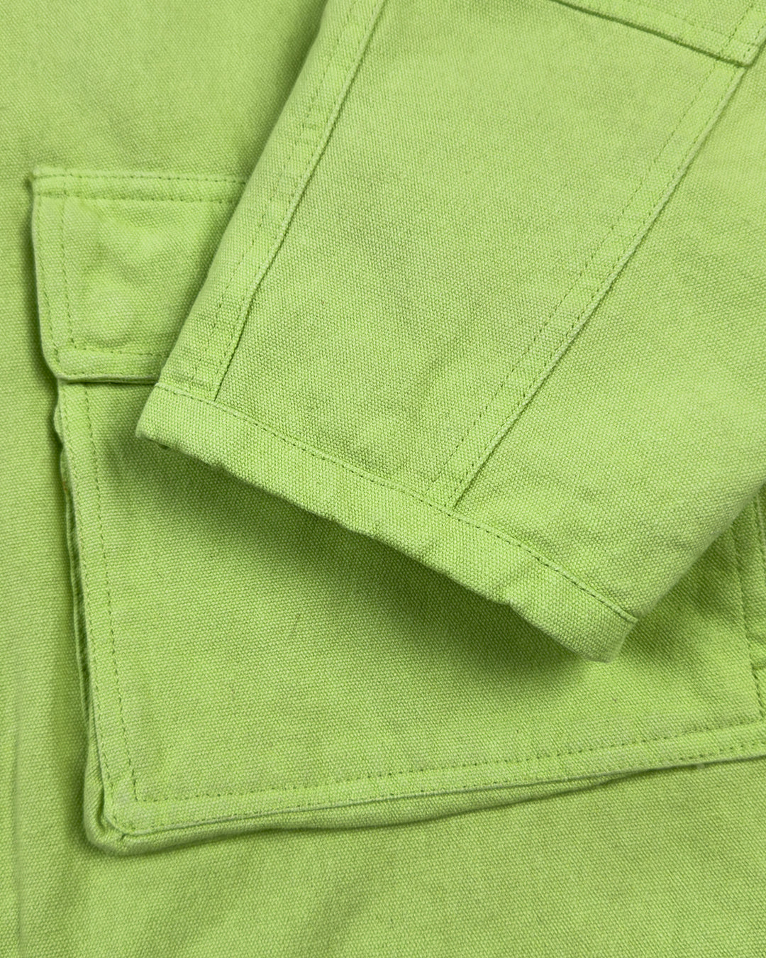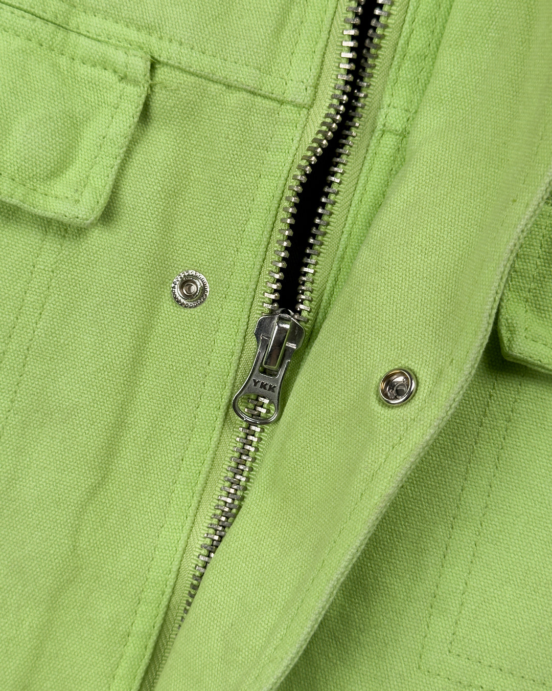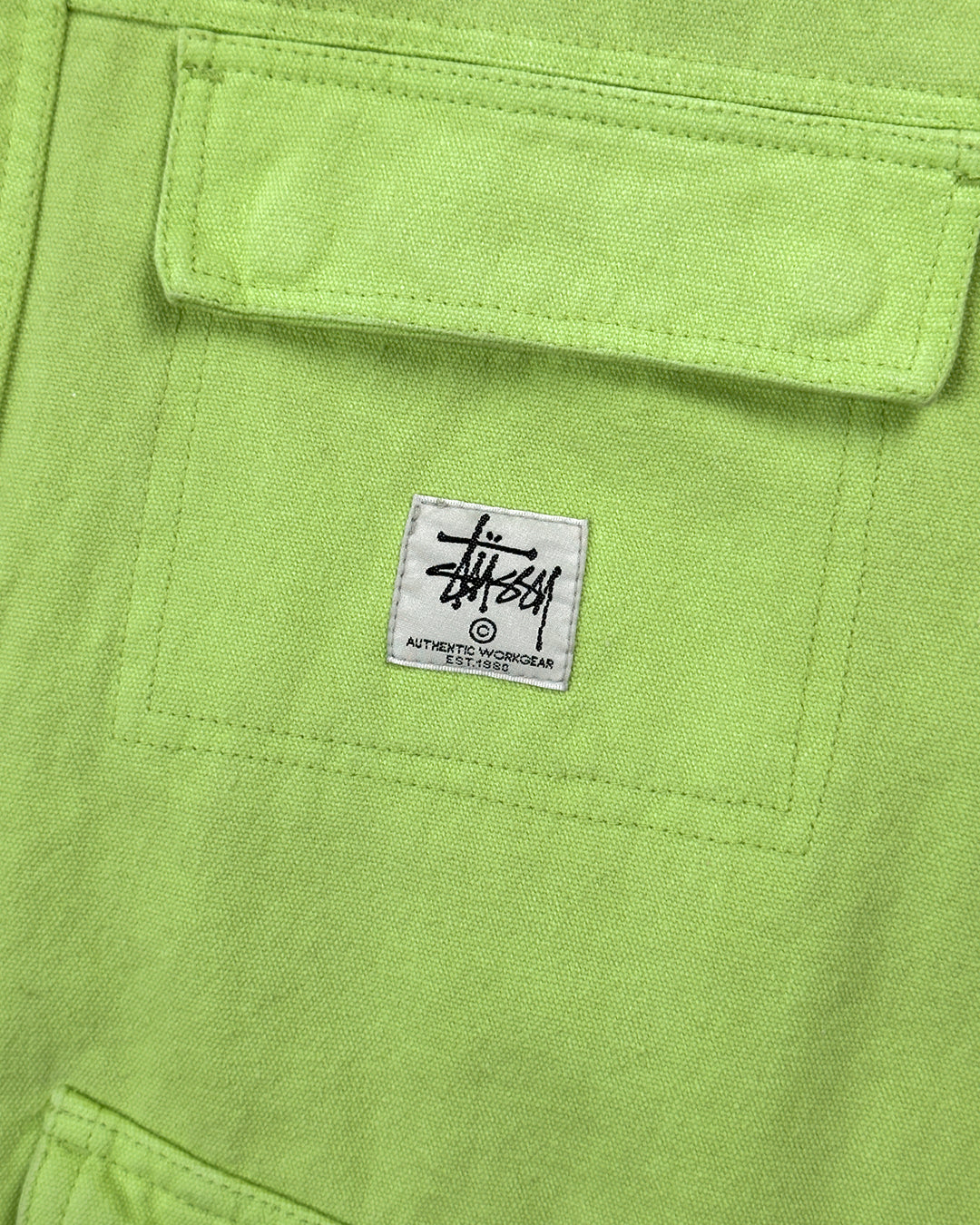 Сучасна робоча куртка від Stüssy з полотна стала символом естетики скейт-бренду. Ця ітерація виконана з чотирма передніми кишенями на кнопках та застібкою-блискавкою спереду. Куртка також має контрастний вельветовий комір та нашивку Stüssy WorkGear на грудях.