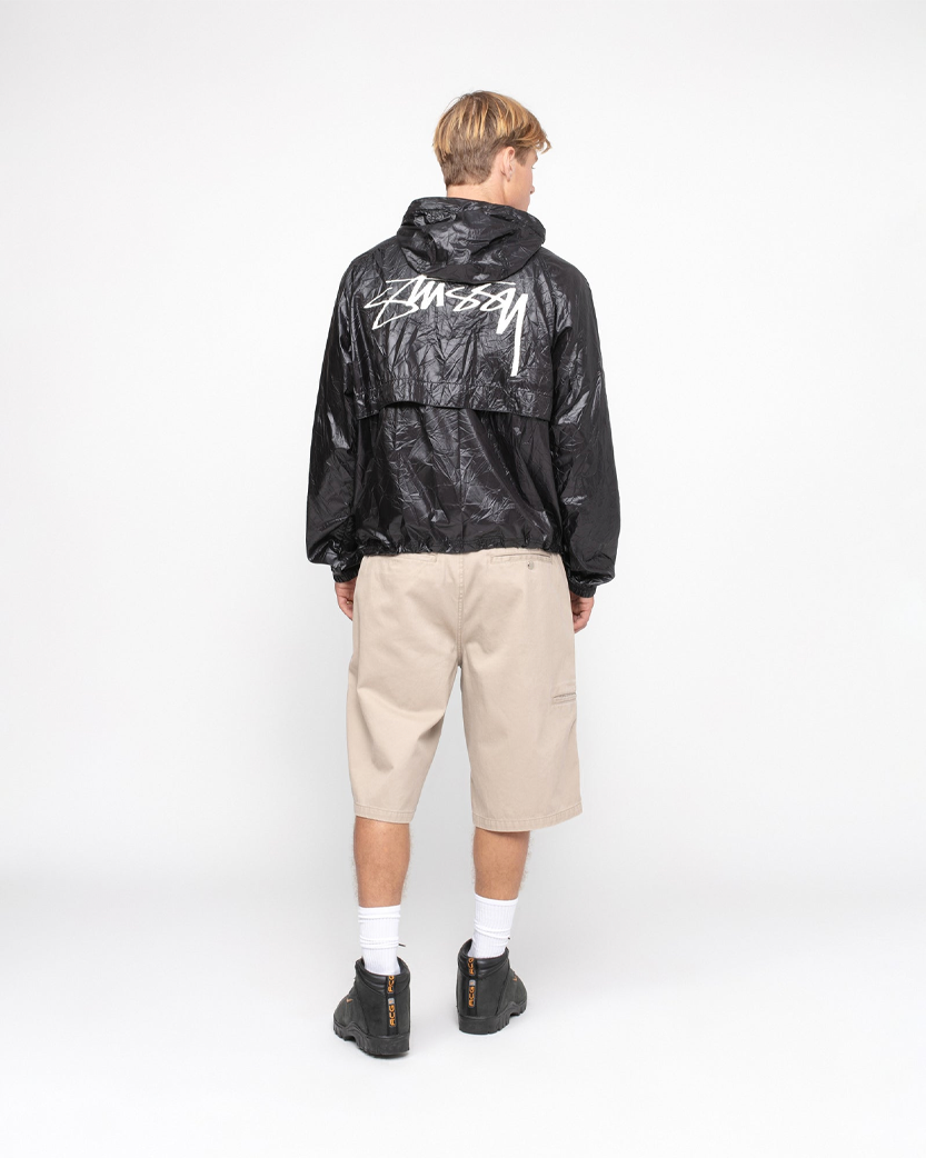 STUSSY Wrinkled Nylon Beach Shell Jacket Black