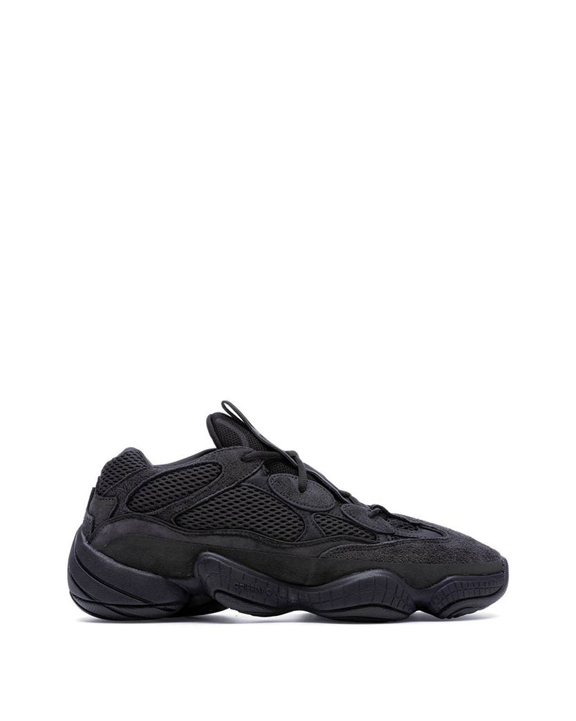 Модель Аdidas Yeezy 500 Utility Black 2023 року відроджує монохромне забарвлення бігових кросівок для активного способу життя. Верх із змішаних матеріалів виконаний у чорному кольорі, підкреслений повітряною сітчастою основою з тональними замшевими накладками та міцним гумовим бризковиком. Світловідбиваючі деталі навколо люверсів і накладки на середній частині стопи забезпечують кращу видимість в умовах низької освітленості. Кросівки стоять на чорній підошві з амортизацією adidas adiPRENE+, що забезпечує плавність ходу.