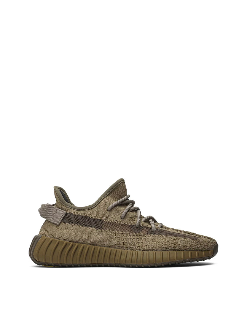 Yeezy Boost 350 V2 Earth використовує верхню частину Primeknit однотонного темно-хакі відтінку, доповнену пофарбованою бічною смугою з мононитки для текстурної різноманітності та текстильною п'ятковою накладкою для легкого взування та роззування. Проміжна підошва відрізняється від традиційного напівпрозорого вигляду боковин з непрозорої коричневої гуми, приховуючи повноцінну амортизацію Boost, розміщену всередині. Гумова підошва забезпечує міцне зчеплення з поверхнею. Колір "Earth" доступний лише в Північній та Латинській Америці.